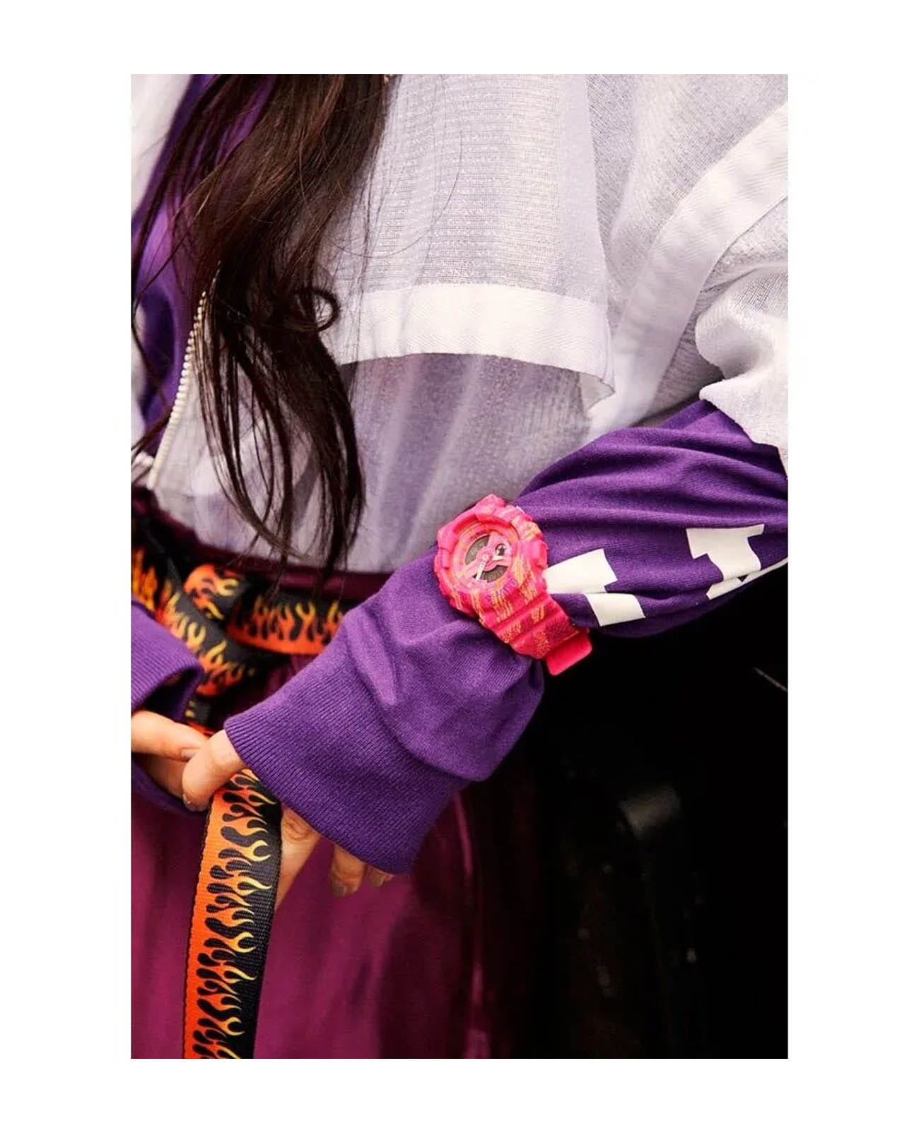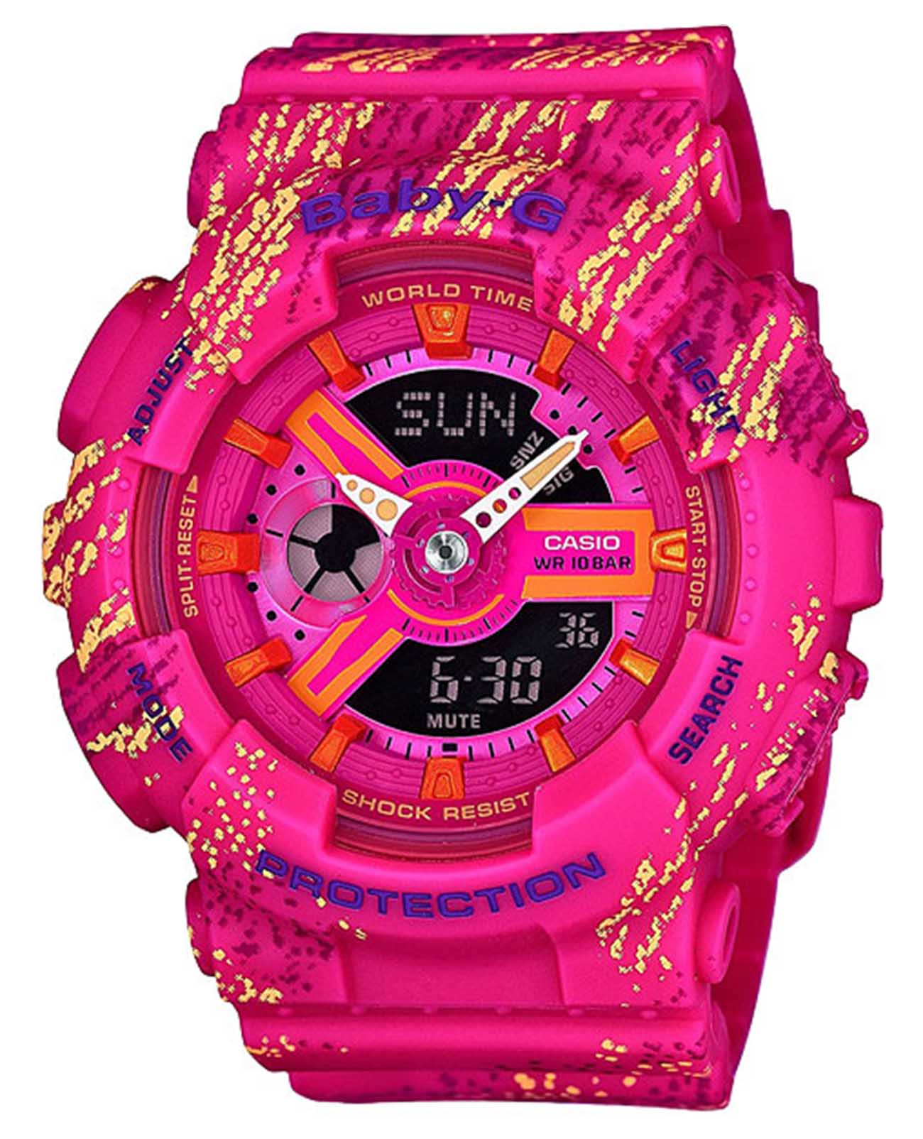 Японские женские часы-хронографХронографФункция позволяет измерять отрезки времени с особой точностью: часы, минуты, секунды. Верным признаком хронографа является наличие на циферблате 3 дополнительных окошек-счётчиков. Casio Baby-G BA-110TX-4A из коллекции Baby-G. Серия, которая выражает спортивность и цвет, которые являются основой бренда Baby-G. Минеральное стеклоМинеральное стеклоМинеральное стекло представляет собой искусственно выращенный минерал кварца. Такое стекло отличается особой устойчивостью к повреждениям и царапинам. Уступает по некоторым качествам сапфировому стеклу. устойчивое к появлению царапин, обладающее высокой прозрачностью. Корпус часов изготовлен из полимерного материала. Функции: автоматическая светодиодная подсветка.Необритовое покрытиеПодсветка NeobriteИспользование светонакопительных составов на основе сульфида цинка или алюмината стронция, яркий свет можно наблюдать на протяжении 6-10 часов после «зарядки» часов около источника света. продолжает светиться в темноте даже после непродолжительного пребывания на свету.Ударопрочный корпусУдаропрочный корпусМеханизм заключён в корпус, выполненный из современных материалов, устойчивых к ударам, механическим повреждениям и падению с высоты: инновационный пластик, карбон, нержавеющая сталь, титан. защищает механизм от ударов и вибрации. Функция Мирового времениМировое время Полезное часовое усложнение, отображающее время в основных городах и известных областях по всему миру, оно связано с часовыми поясами, удобно для путешественников и бизнесменов. . СекундомерСекундомерСекундоме́р — прибор, способный измерять интервалы времени с точностью до долей секунды. с точностью измерения 1/100 секунды и измерением до 23 часов 59 минут 59,99 cек. ТаймерТаймерОтсчитывает секунды в обратном направлении в заданном интервале времени. обратного отсчета (диапазон времени 24 часа), автоматический календарь, 12/24 отображение времени. 5 ежедневных будильниковБудильникБуди́льник — часы, в заданный момент времени подающие звуковой, световой и/или в редких случаях другой сигнал.. Функция включения/отключения звука. Класс водозащиты: 100 метров, позволит плавать без погружения. Ремешок из полимерного материала на стандартной застежке.
