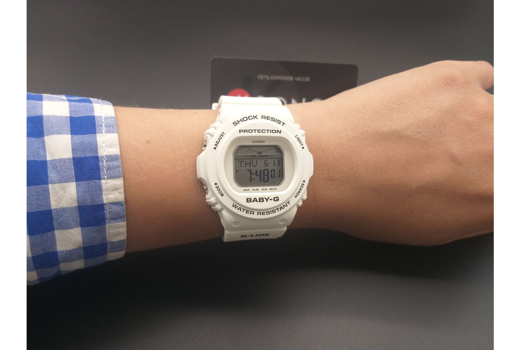 Модель G-Lide с цифровым дисплеем в белом противоударном корпусеУдаропрочный корпусМеханизм заключён в корпус, выполненный из современных материалов, устойчивых к ударам, механическим повреждениям и падению с высоты: инновационный пластик, карбон, нержавеющая сталь, титан. поможет завершить повседневный образ. Покорение водной стихии теперь стало лёгким делом благодаря отображению лунных фаз, составлению графика приливов и отливов. Японский кварцевый механизм. Минеральное стекло. Удобный полимерный ремешок. Электролюминесцентная подсветкаЭлектролюминесцентная подсветкаЭлектролюминесцентная панель устанавливается под ЖК-экраном часов, при нажатии кнопки электричество преобразуется в свет за счёт подачи напряжения на атомы фосфора, такой тип подсветки позволяет освещать весь циферблат.. Водостойкость до 200 метров. Повышенная ударопрочность. секундомер, будильник с функцией «подремать», мировое времяМировое время Полезное часовое усложнение, отображающее время в основных городах и известных областях по всему миру, оно связано с часовыми поясами, удобно для путешественников и бизнесменов. – 48 городов, вечный календарьВечный календарьКлассическое часовое усложнение, представляющее собой календарь, рассчитанный на несколько лет вперёд (стандартно – до 2099 года). Определяет текущую дату, день недели, месяц., таймер, хронографХронографФункция позволяет измерять отрезки времени с особой точностью: часы, минуты, секунды. Верным признаком хронографа является наличие на циферблате 3 дополнительных окошек-счётчиков.. Габариты: 44,9 x 43 x 12,9 мм.
