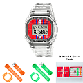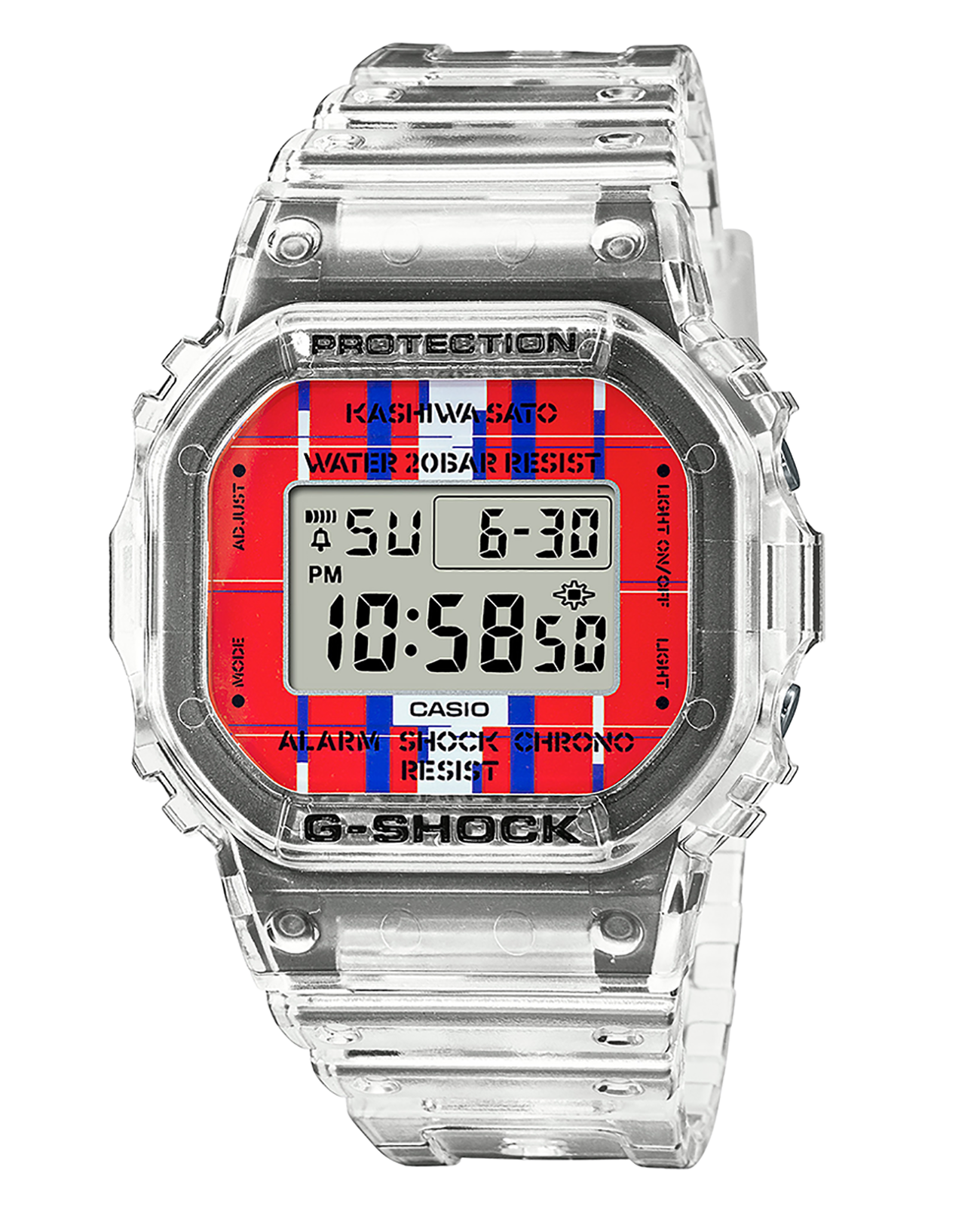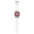 Брендовый джишок наценен на ценителей олдскульного квадратного корпуса, прототипом для которого стали первые модели Casio. . Наручные часы в прозрачном исполнении отображают время в цифровом формате, инверсионный дисплей имеет яркое обрамление. Противоударный корпусУдаропрочный корпусМеханизм заключён в корпус, выполненный из современных материалов, устойчивых к ударам, механическим повреждениям и падению с высоты: инновационный пластик, карбон, нержавеющая сталь, титан. с углеродными волокнами надёжно защищает японский кварцевый механизм от повреждений, последствий падения. Питание идёт от батарейки, рассчитанной на 2 года службы. Закаленное минеральное стекло. Комфортный полимерный ремешок. Электролюминесцентная подсветкаЭлектролюминесцентная подсветкаЭлектролюминесцентная панель устанавливается под ЖК-экраном часов, при нажатии кнопки электричество преобразуется в свет за счёт подачи напряжения на атомы фосфора, такой тип подсветки позволяет освещать весь циферблат.. Водостойкость 20 бар. Секундомер, автокалендарь, мировое времяМировое время Полезное часовое усложнение, отображающее время в основных городах и известных областях по всему миру, оно связано с часовыми поясами, удобно для путешественников и бизнесменов. , многофункциональный будильник, хронографХронографФункция позволяет измерять отрезки времени с особой точностью: часы, минуты, секунды. Верным признаком хронографа является наличие на циферблате 3 дополнительных окошек-счётчиков., таймер. Габариты:48,9мм x 43,8мм x 13,7мм