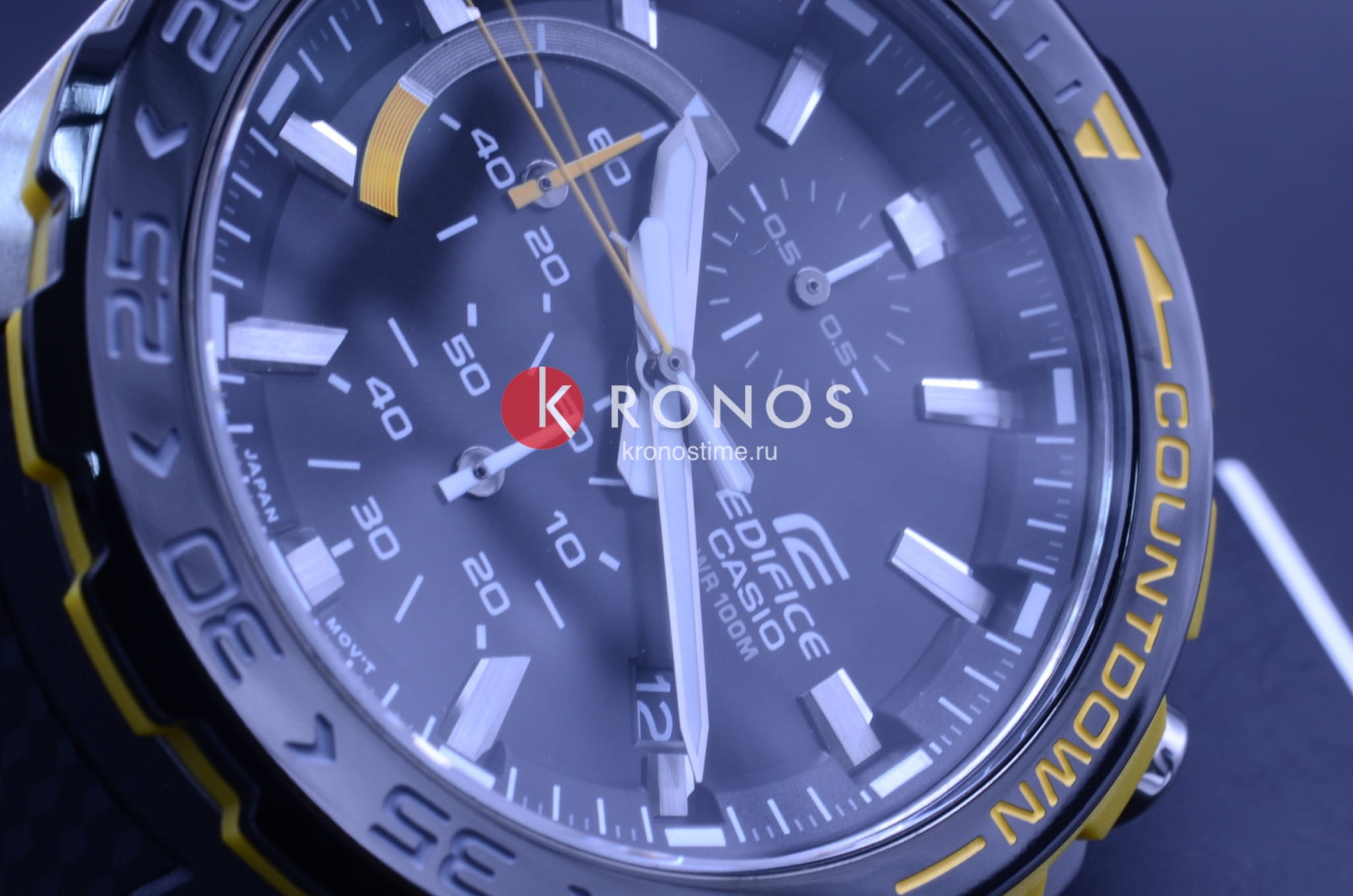 Мужские японские часы из коллекции Edifice в чёрно-жёлтом исполнении позволят выделяться среди окружающих, стильная модель станет ключевой деталью вашего образа.