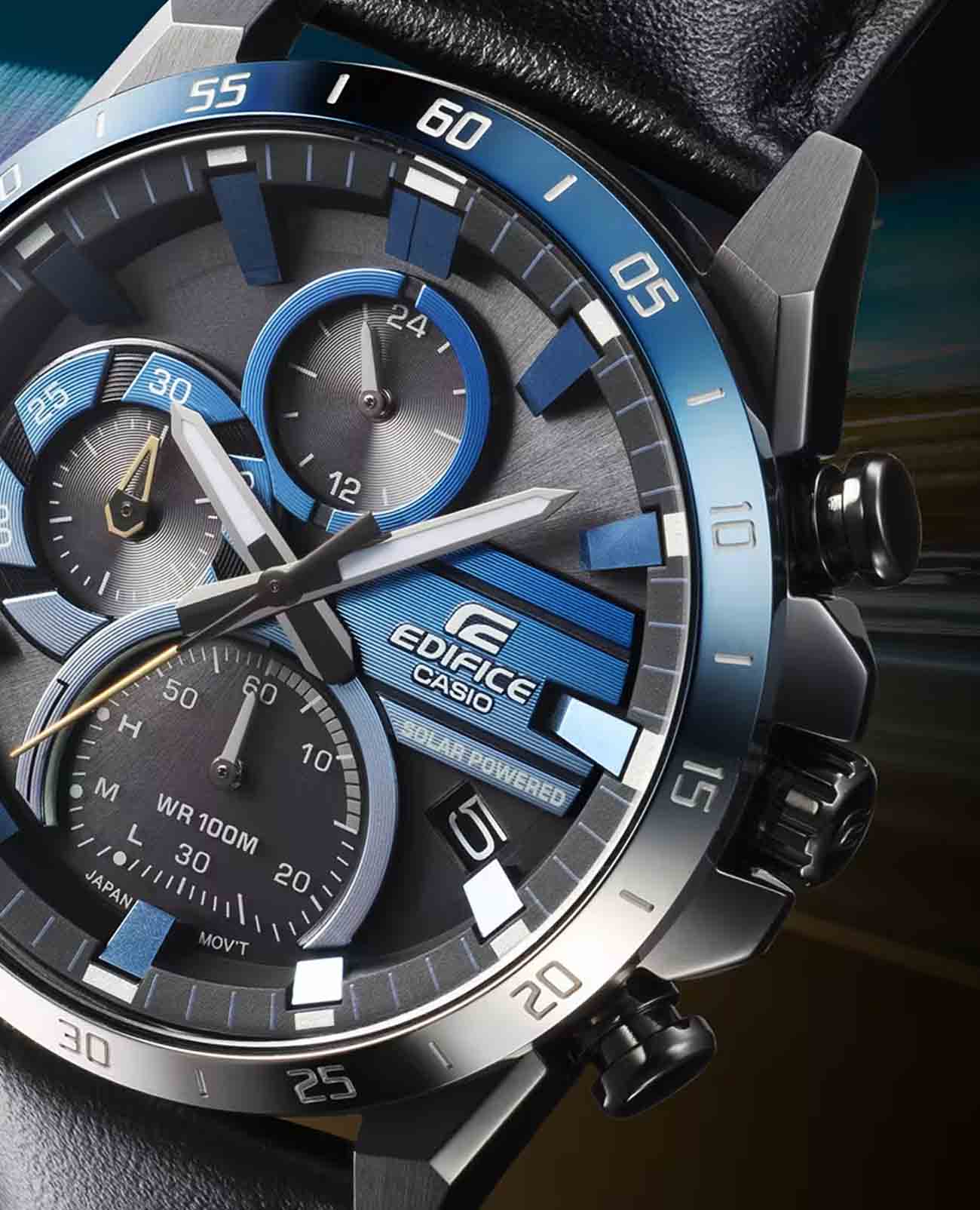 Мужские часы, дизайн которых вдохновлен воздушным потоком вокруг гоночного автомобиля. Многофункциональные японские мужские часы с BluetoothBluetoothСовременная технология, позволяющая синхронизировать часы с телефоном и переносить данные. Часы с Bluetooth расширяют возможности вашего смартфона и делают его использование ещё более удобным. Casio Edifice EQS-940NL-1AVUDF, кварцевый механизм с высокой точностью. Корпус часов изготовлен из нержавеющей стали с IP-покрытиемIP-покрытиеМетод ионного напыления. Демонстрирует повышенную устойчивость к истиранию, окислению и химическим веществам. Под воздействием высокого давления и температуры около 1500°C молекулы металла надёжно соединяются с частицами корпуса часов.. Питание от солнечной энергии Tough SolarTough SolarТехнология основана на подзарядке аккумулятора от источника солнечного света, специальная панель улавливает солнечные лучи и преобразует их в энергию для работы часов. Достаточно пары минут нахождения на солнце для функционирования часов в течении суток. - солнечные батарейки большой мощности, индикатор заряда батареи. Функция автоматического сохранения энергии. Время работы аккумулятора без подзарядки приблизительно 7 месяцев, при включенной функции сохранения энергии приблизительно 18 месяцев. Двойная подcветка: циферблат и ЖК-дисплеи подсвечиваются светодиодомСветодиодная подсветкаСветодиодная или LED-подсветка обеспечивает появление яркого холодного свечения за счёт LED-элементов - маленьких лампочек. Они потребляют минимальное количество энергии, чаще всего можно встретить 1 светодиод, в нижней части циферблата., благодаря наличию функции задержки, после отпускания кнопки освещение горит еще несколько секунд. Настраиваемое послесвечение 1,5 или 3сек. Подсветка NeobriteПодсветка NeobriteИспользование светонакопительных составов на основе сульфида цинка или алюмината стронция, яркий свет можно наблюдать на протяжении 6-10 часов после «зарядки» часов около источника света. обеспечивает длительное послесвечение в темноте даже после кратковременного нахождения на свету. 12-ти и 24-х часовой формат времени. СекундомерСекундомерСекундоме́р — прибор, способный измерять интервалы времени с точностью до долей секунды. с двумя точностями показаний: 1/100с (до 1ч) и 1с (после 1ч) и временем измерения 24ч. Сплит-хронографСплит-хронографИспользуется для измерения продолжительности нескольких временных отрезков, начинающихся одновременно, а заканчивающихся в разное время.. ТаймерТаймерОтсчитывает секунды в обратном направлении в заданном интервале времени. обратного отсчета от 1с до 1ч. Класс водозащиты: 100 метров, позволит плавать, нырять и заниматься другими водными видами спорта. Полимерный ремешок на стандартной застежке.