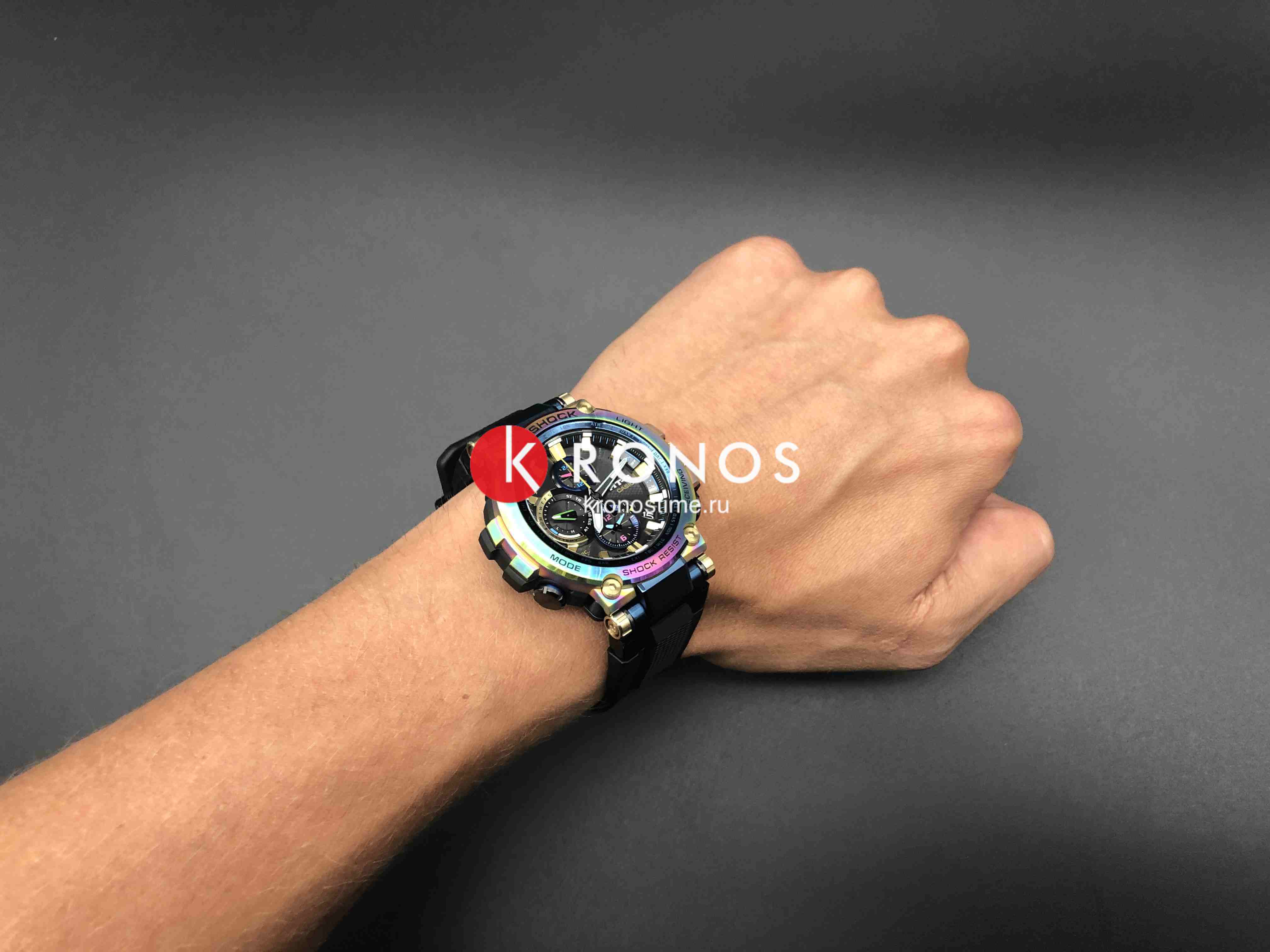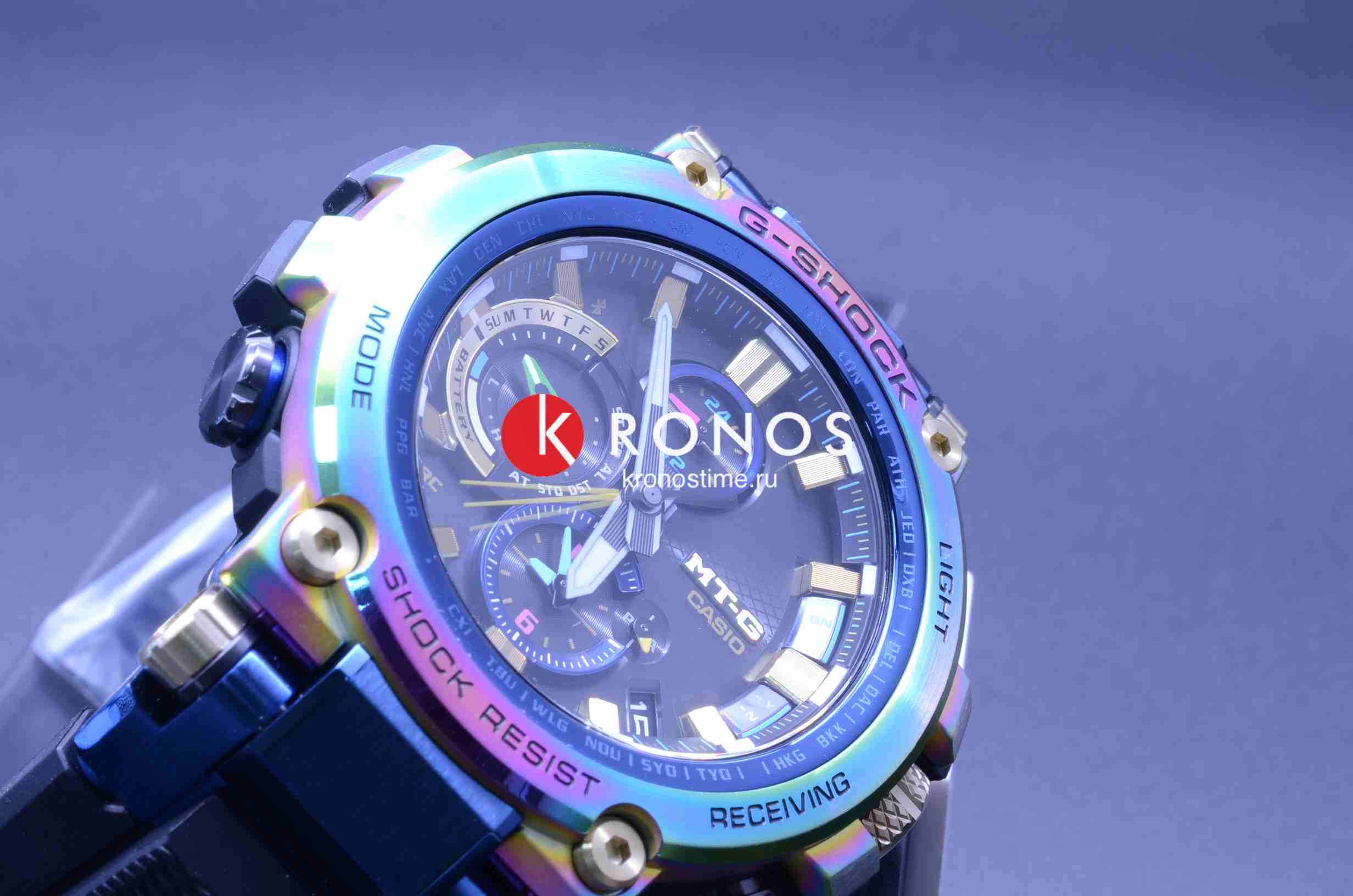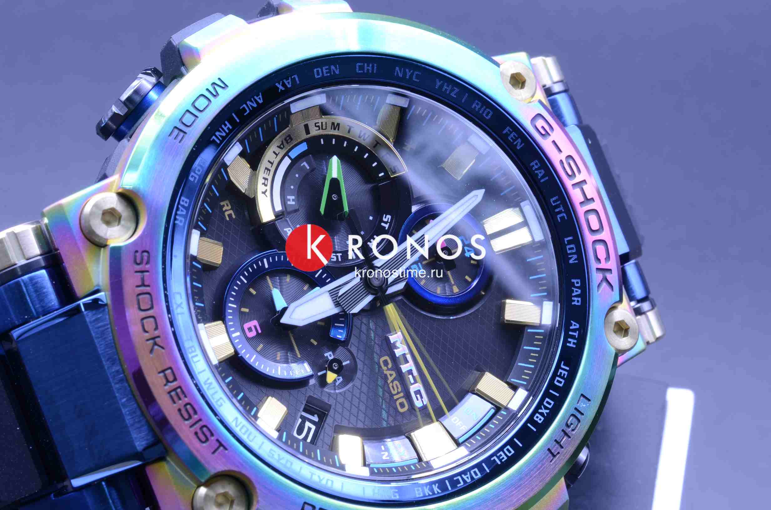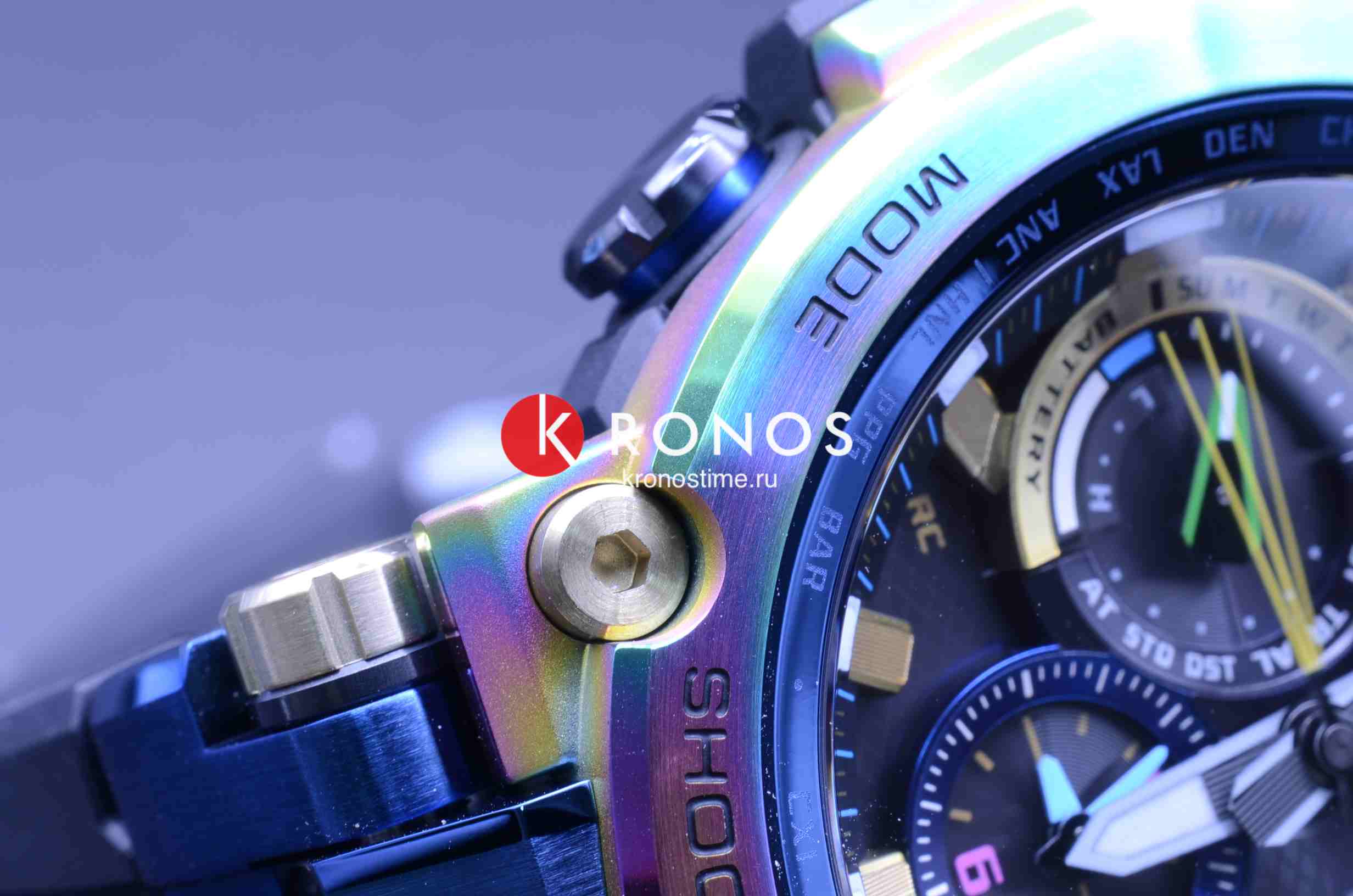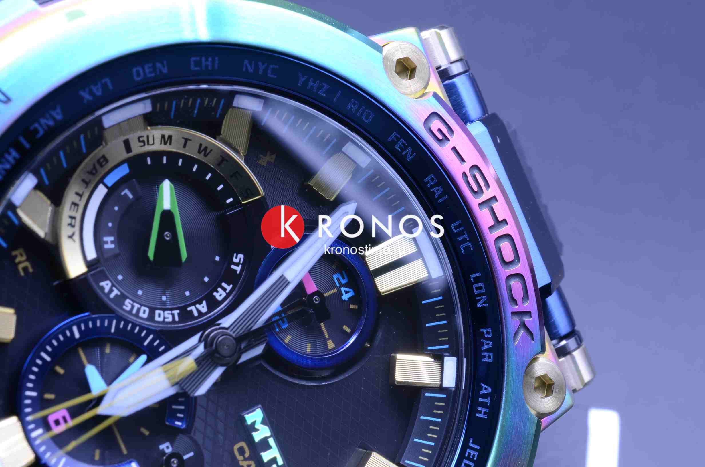 Харизматичный релиз BASELWORLD года от Casio, лимитированная модель G-Shock MTG, выпущенная в честь 20-летия стальной линейки джишок. Юбилейная модель получила уникальный дизайн: стальной корпус имеет устойчивое к царапинам ионное напыление с интерференционным эффектом. Часы из премиум коллекции G-SHOCK MTG производятся исключительно в одной стране - в Японии. Сборка часов осуществляется в Ямагата на высоко-технологичном производстве компании CASIO. В процессе сборки используются инновационные технологии, позволяющие сделать конечный продукт качественным, надежным и долговечным. В модели по прежнему используется технологически безупречная сталь Core Guard® с повышенной защитой от царапин, сферическое сапфировое стекло с анти-бликом и фирменный, гасящий любые колебания гель Alpha Gel®, что придает ей абсолютную ударопрочность.