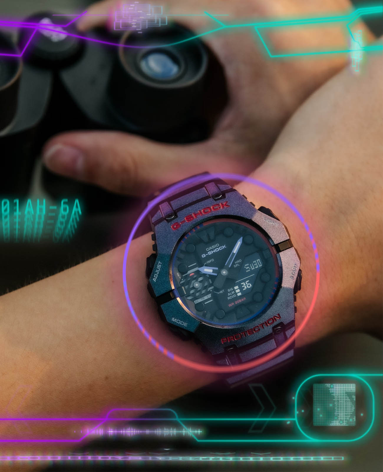Японские мужские часы Casio G-Shock GA-B001AH-6A. Для тех, кто ставит перед собой более высокие цели в виртуальном мире — и в реальной жизни! Представляем G-SHOCK, вдохновленный решимостью, необходимой для достижения высочайших уровней компьютерных игр и выживания. Геймеры знают, что нужно для достижения высоких результатов в экшенах и стрелялках. Эти часы воссоздают захватывающий, постоянно меняющийся игровой мир с помощью поляризованной краски фиолетового и зеленого цветов, которая меняет цвет в зависимости от угла обзора. Такие детали, как оптический прицел для наведения прицела на цель, воплощены в оранжевых акцентах и графике на жидкокристаллическом экране, создавая игривый дизайн, который плавно перемещается между реальным и виртуальным мирами. Carbon Core GuardCarbon Core Guard Новейшая структура корпуса, разработанная Casio. Полиуретановая пластина дополнительно усилена карбоновыми вставками, что придаёт специальную защиту от механических повреждений. Карбон отличается лёгкостью и прочностью.. Минеральное стеклоМинеральное стеклоМинеральное стекло представляет собой искусственно выращенный минерал кварца. Такое стекло отличается особой устойчивостью к повреждениям и царапинам. Уступает по некоторым качествам сапфировому стеклу. устойчивое к появлению царапин, обладающее высокой прозрачностью. Светодиодная подсветкаСветодиодная подсветкаСветодиодная или LED-подсветка обеспечивает появление яркого холодного свечения за счёт LED-элементов - маленьких лампочек. Они потребляют минимальное количество энергии, чаще всего можно встретить 1 светодиод, в нижней части циферблата., настраиваемое послесвечение 1,5 или 3сек. Мировое время Мировое время Полезное часовое усложнение, отображающее время в основных городах и известных областях по всему миру, оно связано с часовыми поясами, удобно для путешественников и бизнесменов. 38 часовой пояс (38 городов + всемирное координированное время UTCUTCВсемирное кординационное время, не имеющее привязки к географическому положению Гринвича, основывается на атомном отсчёте времени. Регулировка времени осуществляется более точно, чем устаревшее GMT.