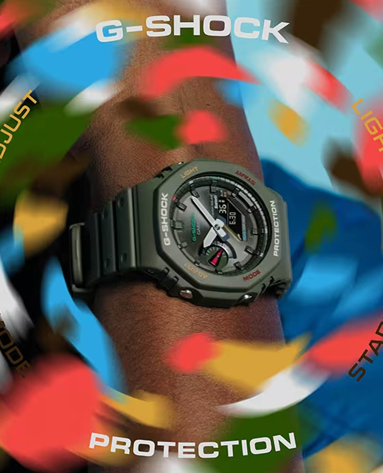 Японские мужские часы-хронографХронографФункция позволяет измерять отрезки времени с особой точностью: часы, минуты, секунды. Верным признаком хронографа является наличие на циферблате 3 дополнительных окошек-счётчиков. Casio G-Shock GA-B2100FC-3A. Супер стильная обновленная расцветка в одном из самых популярных корпусов G-Shock последних лет. Харизматичная модель в матовом оливковом корпусе с контрастными стрелками и яркими деталями циферблата из серии GA-B2100 сохранила внешний облик своих предшественников по серии GA-2100, но получила более технологичный модуль с блютус синхронизацией со смартфоном и Tough SolarTough SolarТехнология основана на подзарядке аккумулятора от источника солнечного света, специальная панель улавливает солнечные лучи и преобразует их в энергию для работы часов. Достаточно пары минут нахождения на солнце для функционирования часов в течении суток.. Минеральное стеклоМинеральное стеклоМинеральное стекло представляет собой искусственно выращенный минерал кварца. Такое стекло отличается особой устойчивостью к повреждениям и царапинам. Уступает по некоторым качествам сапфировому стеклу. устойчивое к появлению царапин, обладающее высокой прозрачностью. Ударопрочный корпусУдаропрочный корпусМеханизм заключён в корпус, выполненный из современных материалов, устойчивых к ударам, механическим повреждениям и падению с высоты: инновационный пластик, карбон, нержавеющая сталь, титан. Carbon Core GuardCarbon Core Guard Новейшая структура корпуса, разработанная Casio. Полиуретановая пластина дополнительно усилена карбоновыми вставками, что придаёт специальную защиту от механических повреждений. Карбон отличается лёгкостью и прочностью.. Светодиодная подсветкаСветодиодная подсветкаСветодиодная или LED-подсветка обеспечивает появление яркого холодного свечения за счёт LED-элементов - маленьких лампочек. Они потребляют минимальное количество энергии, чаще всего можно встретить 1 светодиод, в нижней части циферблата. освещает весь циферблат, после отпускания кнопки свечение продолжается еще некоторое время. Настраиваемое послесвечение 1,5 или 3сек. Мировое время Мировое время Полезное часовое усложнение, отображающее время в основных городах и известных областях по всему миру, оно связано с часовыми поясами, удобно для путешественников и бизнесменов. 38 городов (38 часовых поясов), всемирное координированное время UTCUTCВсемирное кординационное время, не имеющее привязки к географическому положению Гринвича, основывается на атомном отсчёте времени. Регулировка времени осуществляется более точно, чем устаревшее GMT.