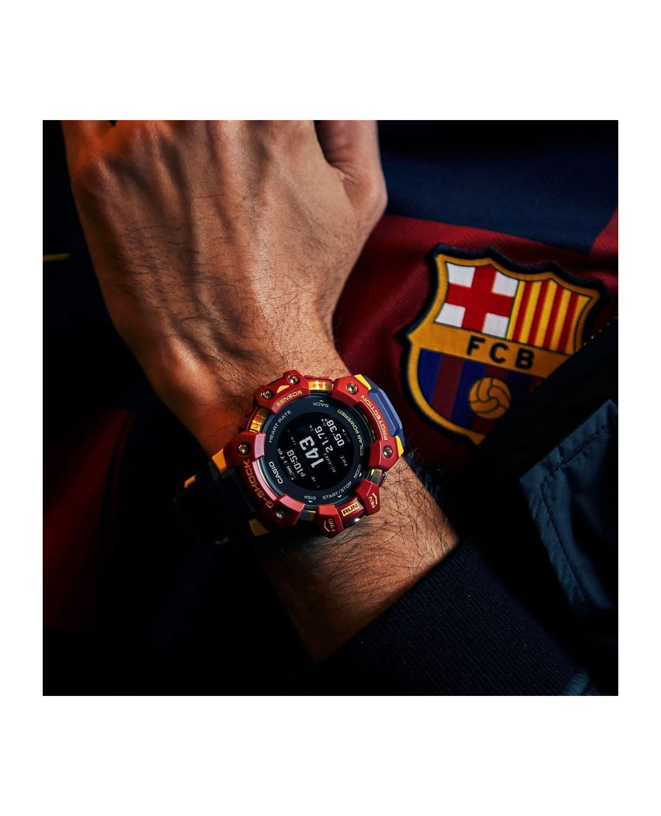 Японские мужские часы-хронографХронографФункция позволяет измерять отрезки времени с особой точностью: часы, минуты, секунды. Верным признаком хронографа является наличие на циферблате 3 дополнительных окошек-счётчиков. Casio G-Shock GBD-100BAR-4E из коллекции G-Shock. Эти часы от Casio оценят активные и целеустремленные мужчины, которые не представляют свою жизнь без спорта. G-SQUAD. Мужские часы выполнены в коллаборации с создателями сериала Matchday: Inside FC Barcelona. Цветовая гамма часов выполнена в цветах футбольного клуба «Барселона», который является самым титулованным клубом Испании. Минеральное стеклоМинеральное стеклоМинеральное стекло представляет собой искусственно выращенный минерал кварца. Такое стекло отличается особой устойчивостью к повреждениям и царапинам. Уступает по некоторым качествам сапфировому стеклу. устойчивое к появлению царапин, обладающее высокой прозрачностью. Корпус часов изготовлен из полимерного материала. Светодиодная автоподсветка NeobriteПодсветка NeobriteИспользование светонакопительных составов на основе сульфида цинка или алюмината стронция, яркий свет можно наблюдать на протяжении 6-10 часов после «зарядки» часов около источника света. - при повороте часов в сторону лица подсветка дисплея осуществляется автоматически. Настраиваемое послесвечение 1,5 или 3сек. Ударопрочный корпусУдаропрочный корпусМеханизм заключён в корпус, выполненный из современных материалов, устойчивых к ударам, механическим повреждениям и падению с высоты: инновационный пластик, карбон, нержавеющая сталь, титан. защищает механизм от ударов и вибрации. Мировое времяМировое время Полезное часовое усложнение, отображающее время в основных городах и известных областях по всему миру, оно связано с часовыми поясами, удобно для путешественников и бизнесменов. – 48 городов (29 часовых поясов). СекундомерСекундомерСекундоме́р — прибор, способный измерять интервалы времени с точностью до долей секунды. с точностью измерения 1/100 секунды и измерением до 23 часов 59 минут 59,99 cек. ТаймерТаймерОтсчитывает секунды в обратном направлении в заданном интервале времени. обратного отсчета (диапазон времени 24 часа), автоматический календарь, 12/24 отображение времени. 4 будильникаБудильникБуди́льник — часы, в заданный момент времени подающие звуковой, световой и/или в редких случаях другой сигнал., один с функцией Snooze, ежечасный сигнал. Функция тренировки отображает данные о расстоянии, скорости, темпе, сожженных калорий (до 100 пробежек, до 140 кругов за одну пробежку). Приложение Life Log Data отобразит ежедневное количество шагов или ежемесячные данные о пробежках. Связь с GPSGPSСистема спутниковой навигации. Часы оснащены приёмником GPS-сигнала, который получает необходимую информацию по GSM, GPRS, со спутников. Принимая сигнал, наручные часы могут установить точные показатели времени и даты, часовой пояс, сообщить местоположение своего владельца.