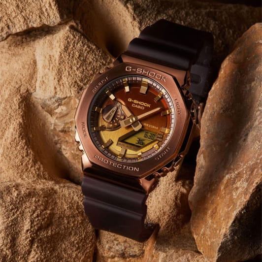 Японские ударопрочныеУдаропрочный корпусМеханизм заключён в корпус, выполненный из современных материалов, устойчивых к ударам, механическим повреждениям и падению с высоты: инновационный пластик, карбон, нержавеющая сталь, титан. мужские часы-хронографХронографФункция позволяет измерять отрезки времени с особой точностью: часы, минуты, секунды. Верным признаком хронографа является наличие на циферблате 3 дополнительных окошек-счётчиков. Casio G-Shock GM-2100CL-5ADR (GM-2100CL-5a). Сверхмощная двойная подсветка. При нажатии на кнопку подсветки циферблат часов освещает светодиод, а также отдельно подсвечивается цифровой дисплей. На стрелки часов нанесено NeobriteПодсветка NeobriteИспользование светонакопительных составов на основе сульфида цинка или алюмината стронция, яркий свет можно наблюдать на протяжении 6-10 часов после «зарядки» часов около источника света.-покрытие. Полный автокалендарь (до 2099 года). Включение/выключение звукового сигнала нажатия кнопки. 12/24-часовой формат времени. Мировое время Мировое время Полезное часовое усложнение, отображающее время в основных городах и известных областях по всему миру, оно связано с часовыми поясами, удобно для путешественников и бизнесменов. 31 часовой пояс (48 городов + всемирное координированное время), переход на летнее время вкл./выкл. СекундомерСекундомерСекундоме́р — прибор, способный измерять интервалы времени с точностью до долей секунды.. ТаймерТаймерОтсчитывает секунды в обратном направлении в заданном интервале времени.. 5 ежедневных будильников. Почасовой сигнал времени. Класс водозащиты: 200 метров, позволит плавать, нырять и заниматься другими водными видами спорта. Пластиковый ремешок на стандартной застежке.