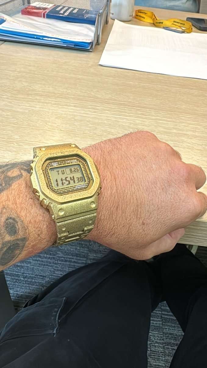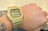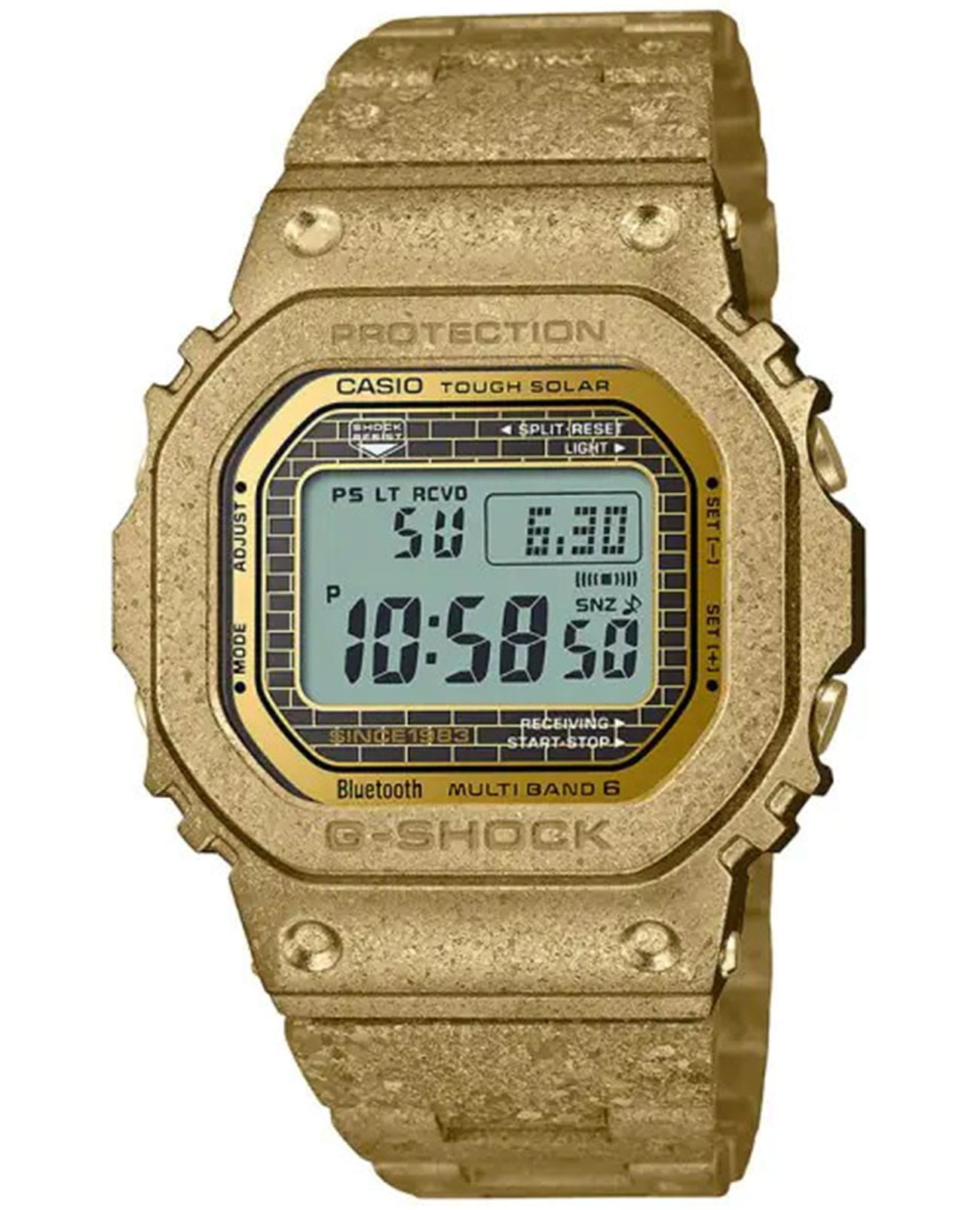 Юбилейная модель GMW-B5000PG - дополнение к линейке GMW-B5000, выполненная в цельнометаллическом корпусе и дополняющая самую первую модель G-SHOCK, DW-5000, которая дебютировала 40 лет назад, в апреле 1983 года. Часы, выпущенные ограниченным тиражом, выполнены из перекристаллизованной нержавеющей стали с глубоким упрочнением, разработанной специально для этого выпуска. После перекристаллизации и многослойной закалки безель и ремешок покрыты ионным золотом, а задняя крышка с винтовым замком покрыта DLC-покрытием для придания смелого, сияющего вида. В знак особого уважения к DW-5000 на циферблате выгравирована фраза “С 1983 года”. Модель оснащена богатым функционалом: BluetoothBluetoothСовременная технология, позволяющая синхронизировать часы с телефоном и переносить данные. Часы с Bluetooth расширяют возможности вашего смартфона и делают его использование ещё более удобным., таймерТаймерОтсчитывает секунды в обратном направлении в заданном интервале времени., функция поиска телефона, UTCUTCВсемирное кординационное время, не имеющее привязки к географическому положению Гринвича, основывается на атомном отсчёте времени. Регулировка времени осуществляется более точно, чем устаревшее GMT.