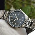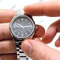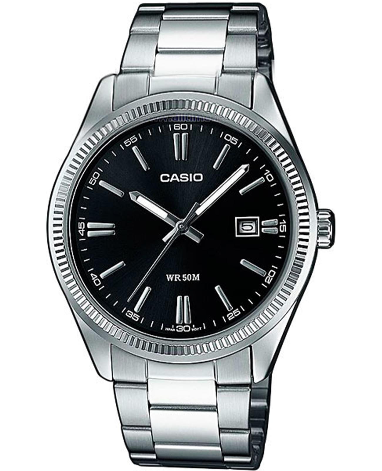 Стильный аксессуар станет лучшим вариантом на каждый день. На чёрном циферблате идеально выделяются контрастные серебристые метки и стрелки, обеспечивая отличную читаемость показателей времени. Элегантности прибавляет фигурный безельБезельВнешний ободок, закрепляющий стекло. В спортивных часах так называется поворотное кольцо с делениями на циферблате, выполняет роль таймера – замеряет отрезки времени на шкале. Неподвижный безель – элемент декора. Однонаправленно вращающийся безель на дайверских часах позволяет фиксировать моменты погружения и выныривания на поверхность.. Кварцевый механизм японского производства работает от батарейки, срок службы которой составляет 3 года. Корпус и браслет из надёжной хирургической стали.Стальной браслет на раскладной застёжкеРаскладная застёжкаТакой тип застёжки используется только на браслетах из металла. Она никогда не раскрывается полностью, происходит разделение на 2 и более частей. Раскладывающая застёжка снизит вероятность потери часов к минимуму.. Минеральное стеклоМинеральное стеклоМинеральное стекло представляет собой искусственно выращенный минерал кварца. Такое стекло отличается особой устойчивостью к повреждениям и царапинам. Уступает по некоторым качествам сапфировому стеклу.. Стрелки с люминесцентной подсветкойЛюминесцентное покрытиеПозволяет считывать показания времени в темноте. Производители наносят на стрелки, часовые индексы, безель или поверхность циферблата светонакопительный состав, дающий холодное свечение.. Водостойкость 50 метров, позволит защитить корпус от случайных брызг или капель дождя. Окошко даты находится в положении 3 часа.Габариты: 44,2x38,5мм x 9,2мм, вес 113г