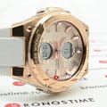 Аксессуар с белым фактурным циферблатом наделён противоударным корпусомУдаропрочный корпусМеханизм заключён в корпус, выполненный из современных материалов, устойчивых к ударам, механическим повреждениям и падению с высоты: инновационный пластик, карбон, нержавеющая сталь, титан. из полимерного пластика. Для усиления устойчивости к ударам безельБезельВнешний ободок, закрепляющий стекло. В спортивных часах так называется поворотное кольцо с делениями на циферблате, выполняет роль таймера – замеряет отрезки времени на шкале. Неподвижный безель – элемент декора. Однонаправленно вращающийся безель на дайверских часах позволяет фиксировать моменты погружения и выныривания на поверхность. сделан из хирургической стали 316L. IP-покрытиеIP-покрытиеМетод ионного напыления. Демонстрирует повышенную устойчивость к истиранию, окислению и химическим веществам. Под воздействием высокого давления и температуры около 1500°C молекулы металла надёжно соединяются с частицами корпуса часов. цвета розового золота защищает от царапин. Японский кварцевый механизм. Полимерный ремешок с узорчатой поверхностью. Минеральное стекло с закалкой. Водозащита до 10 бар. ЛюминесцентнаяЛюминесцентное покрытиеПозволяет считывать показания времени в темноте. Производители наносят на стрелки, часовые индексы, безель или поверхность циферблата светонакопительный состав, дающий холодное свечение. и светодиодная подсветкаСветодиодная подсветкаСветодиодная или LED-подсветка обеспечивает появление яркого холодного свечения за счёт LED-элементов - маленьких лампочек. Они потребляют минимальное количество энергии, чаще всего можно встретить 1 светодиод, в нижней части циферблата.. Будильник, таймер, секундомер с точностью в 1/100 секунды, хронографХронографФункция позволяет измерять отрезки времени с особой точностью: часы, минуты, секунды. Верным признаком хронографа является наличие на циферблате 3 дополнительных окошек-счётчиков., ежечасный сигнал, мировое времяМировое время Полезное часовое усложнение, отображающее время в основных городах и известных областях по всему миру, оно связано с часовыми поясами, удобно для путешественников и бизнесменов. . Габариты: 45,1 x 40,3 x 12,4 мм.