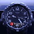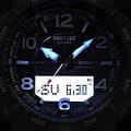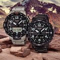 Аксессуар представлен в спортивном стиле, внимание привлекают угловатые детали и крупные габариты. Наручные часы в черной стелс-расцветке оснащены множеством функций, необходимых для активного времяпрепровождения на природе, решения повседневных задач. Это термометр -10°C /+60°C, компас, барометр, график восхода и заката солнца, высотомер, мировое времяМировое время Полезное часовое усложнение, отображающее время в основных городах и известных областях по всему миру, оно связано с часовыми поясами, удобно для путешественников и бизнесменов. , шагомер, хронографХронографФункция позволяет измерять отрезки времени с особой точностью: часы, минуты, секунды. Верным признаком хронографа является наличие на циферблате 3 дополнительных окошек-счётчиков., будильник, календарь. Японский кварцевый механизм с точностью хода -/+15 секунд в месяц получает питание от батарейки, рассчитанной на 2-летний срок службы. Ударопрочный корпусУдаропрочный корпусМеханизм заключён в корпус, выполненный из современных материалов, устойчивых к ударам, механическим повреждениям и падению с высоты: инновационный пластик, карбон, нержавеющая сталь, титан. сделан из полимера, идеальным дополнением к нему стал титановый браслет с IP-покрытиемIP-покрытиеМетод ионного напыления. Демонстрирует повышенную устойчивость к истиранию, окислению и химическим веществам. Под воздействием высокого давления и температуры около 1500°C молекулы металла надёжно соединяются с частицами корпуса часов.. Электролюминесцентная подсветкаЭлектролюминесцентная подсветкаЭлектролюминесцентная панель устанавливается под ЖК-экраном часов, при нажатии кнопки электричество преобразуется в свет за счёт подачи напряжения на атомы фосфора, такой тип подсветки позволяет освещать весь циферблат. освещает дисплей, светодиодСветодиодная подсветкаСветодиодная или LED-подсветка обеспечивает появление яркого холодного свечения за счёт LED-элементов - маленьких лампочек. Они потребляют минимальное количество энергии, чаще всего можно встретить 1 светодиод, в нижней части циферблата. применяется для циферблата. Минеральное стекло защищает циферблат от повреждений, отличается устойчивостью к царапинам. Класс водостойкости – WR 100, часы подходят для плавания. Габариты: 57,5 x 50,8 x 15,8 мм.