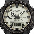 Мужские японские часы Casio Pro Trek PRW-61LD-5 из коллекции Pro Trek отличаются расширенным функционалом на все случаи жизни. Перед вами модель один из флагманов PRO TREK в черном корпусе PRW-61. Данные часы на бежевом полимерном ремешке получили улучшенную структуру корпуса, более устойчивую к ударным нагрузкам и еще более эффективную солнечную батарею, чем их предшественники из знаменитой серии PRW-6000. Особенностью модели является светлый циферблат, полностью покрытый необрайтовым, светящимся в темноте составом.