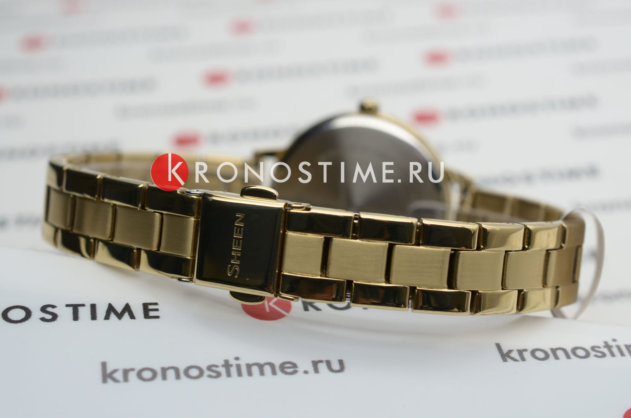 Японские женские часы Casio Sheen SHE-4548G-2A, кварцевый механизм с высокой точностью. Сапфировое стеклоСапфировое стеклоПрочный и надёжный материал из кристалла сапфира синтетического происхождения, характеризующийся особой твёрдостью и устойчивостью к царапинам и повреждениям. устойчивое к появлению царапин, обладающее высокой прозрачностью. Класс водозащиты: 50 метров, позволит защитить корпус от случайных брызг или капель дождя. Корпус часов изготовлен из стали с PVDPVDУльтратонкое покрытие наносится в технике вакуумного напыления, сочетает в себе нитрид титана особой прочности со слоем золота или оксида хрома. Несёт в себе декоративную или защитную функцию. покрытием и с раскладной застёжкойРаскладная застёжкаТакой тип застёжки используется только на браслетах из металла. Она никогда не раскрывается полностью, происходит разделение на 2 и более частей. Раскладывающая застёжка снизит вероятность потери часов к минимуму.