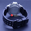 Аксессуар представлен в спортивном стиле. Чёрный полимерный ремешок имеет протекторную поверхность, боковые кнопки рифленые. В верхней части циферблата расположился индикатор рыбалки. Устройство поможет чётко рассчитать благоприятное время для рыбной ловли, в этот момент на экране появятся символы в виде рыбок. Корпус выполнен из полимерного пластика, материал устойчив к ударам, повреждениям. Японский кварцевый механизм. Батарейка рассчитана на 3 года работы. Акриловое стекло не повреждается при падении. Циферблат с оранжевой светодиодной подсветкойСветодиодная подсветкаСветодиодная или LED-подсветка обеспечивает появление яркого холодного свечения за счёт LED-элементов - маленьких лампочек. Они потребляют минимальное количество энергии, чаще всего можно встретить 1 светодиод, в нижней части циферблата.. Класс водостойкости WR 100. Отображение мирового времениМировое время Полезное часовое усложнение, отображающее время в основных городах и известных областях по всему миру, оно связано с часовыми поясами, удобно для путешественников и бизнесменов. . Будильник с функцией повтора, отображение лунных фаз, хронографХронографФункция позволяет измерять отрезки времени с особой точностью: часы, минуты, секунды. Верным признаком хронографа является наличие на циферблате 3 дополнительных окошек-счётчиков., таймер, вечный календарьВечный календарьКлассическое часовое усложнение, представляющее собой календарь, рассчитанный на несколько лет вперёд (стандартно – до 2099 года). Определяет текущую дату, день недели, месяц.. Габариты: 47,9 x 48,6 x 14 мм.