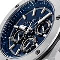 Cerruti 1881 CIWGQ0085602 — стильные мужские часы с выразительным индустриальным дизайном, в которых сочетаются спортивная энергия и итальянская элегантность. Корпус из нержавеющей стали с массивным безелемБезельВнешний ободок, закрепляющий стекло. В спортивных часах так называется поворотное кольцо с делениями на циферблате, выполняет роль таймера – замеряет отрезки времени на шкале. Неподвижный безель – элемент декора. Однонаправленно вращающийся безель на дайверских часах позволяет фиксировать моменты погружения и выныривания на поверхность. с частичным PVD-покрытиемPVDУльтратонкое покрытие наносится в технике вакуумного напыления, сочетает в себе нитрид титана особой прочности со слоем золота или оксида хрома. Несёт в себе декоративную или защитную функцию. и декоративными винтами придаёт модели мощный и мужественный облик. Глубокий синий циферблат с тремя счётчиками хронографаХронографФункция позволяет измерять отрезки времени с особой точностью: часы, минуты, секунды. Верным признаком хронографа является наличие на циферблате 3 дополнительных окошек-счётчиков. подчёркивает технический характер часов, а контрастные стрелки и метки с люминесцентным покрытиемЛюминесцентное покрытиеПозволяет считывать показания времени в темноте. Производители наносят на стрелки, часовые индексы, безель или поверхность циферблата светонакопительный состав, дающий холодное свечение. обеспечивают отличную читаемость при любом освещении. Прочное минеральное стеклоМинеральное стеклоМинеральное стекло представляет собой искусственно выращенный минерал кварца. Такое стекло отличается особой устойчивостью к повреждениям и царапинам. Уступает по некоторым качествам сапфировому стеклу. защищает циферблат от царапин, а эластичный силиконовый ремешок насыщенного синего цвета гарантирует комфорт при повседневном ношении. Cerruti 1881 — гармоничное сочетание функциональности, надёжности и узнаваемого итальянского стиля, идеально подходящее для активных и уверенных мужчин.