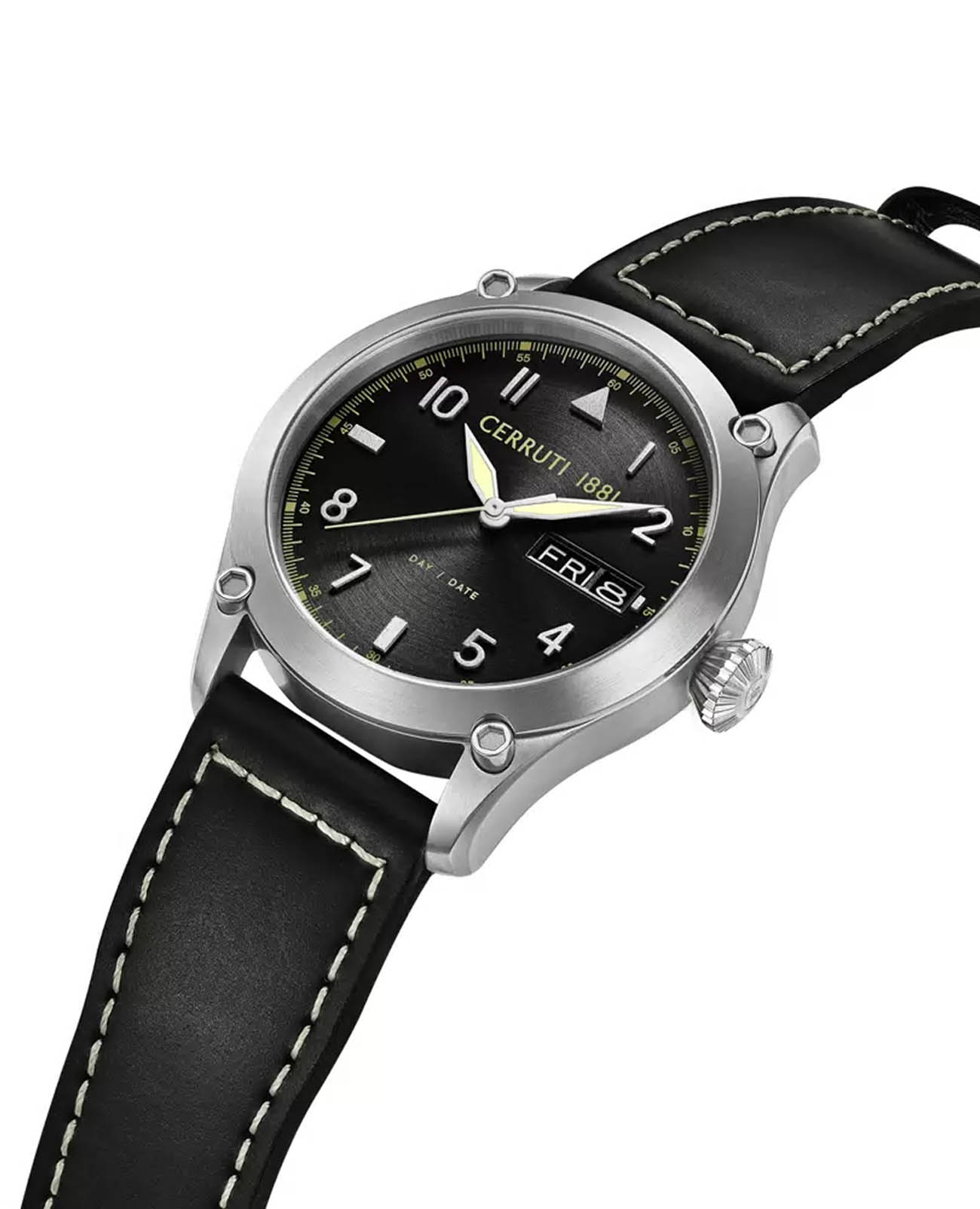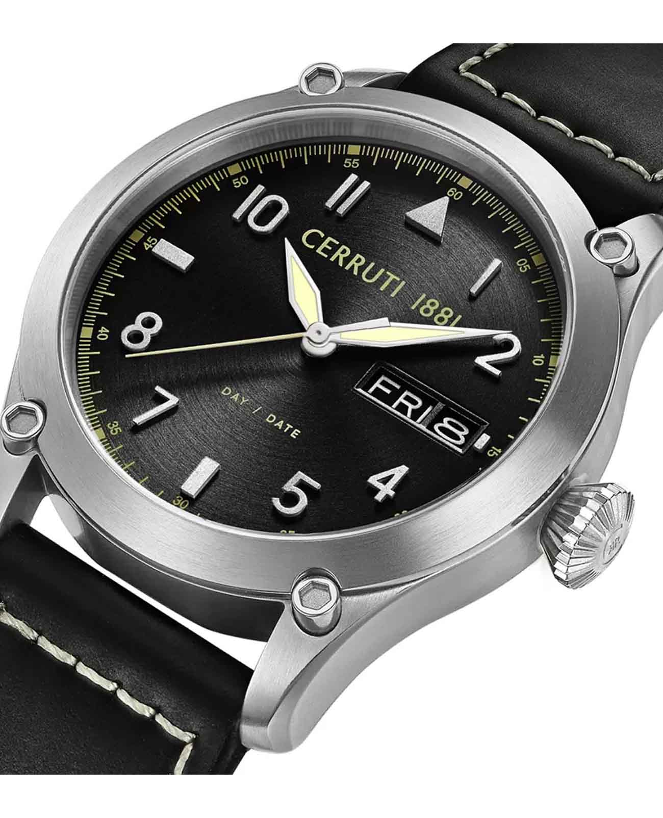 Французские мужские часы Cerruti 1881 BORGATELLO CIWGB0023101, кварцевый механизм с высокой точностью. Минеральное стеклоМинеральное стеклоМинеральное стекло представляет собой искусственно выращенный минерал кварца. Такое стекло отличается особой устойчивостью к повреждениям и царапинам. Уступает по некоторым качествам сапфировому стеклу. устойчивое к мелким механическим повреждениям. Корпус часов изготовлен из стали. Циферблат выполнен с метками в виде арабских цифр. Окошко даты и дня недели находится в положении 3 часа. Стрелки и метки с люминесцентным покрытиемЛюминесцентное покрытиеПозволяет считывать показания времени в темноте. Производители наносят на стрелки, часовые индексы, безель или поверхность циферблата светонакопительный состав, дающий холодное свечение.. Класс водозащиты: 50 метров, позволит защитить корпус от случайных брызг или капель дождя. Кожаный ремешок на стандартной застежке.
