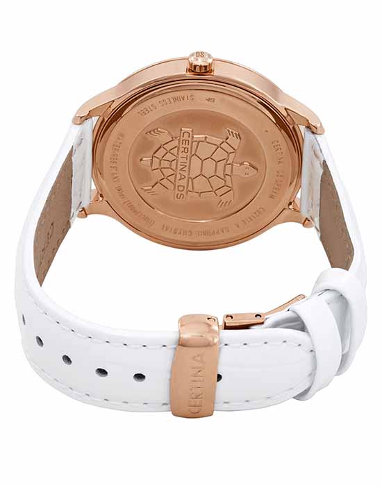 Женские швейцарские часы с сапфировым стеклом Certina DS Dream 38mm C021.810.36.037.00, с белым лаковым ремешком отлично дополнят Ваш образ. Кварцевый механизм с высокой точностью. Сапфировое стекло устойчивое к появлению царапин, обладающее высокой прозрачностью. Класс водозащиты: 100 метров, позволит плавать, нырять и заниматься другими водными видами спорта. Корпус часов изготовлен из стали, позолоченного цвета.