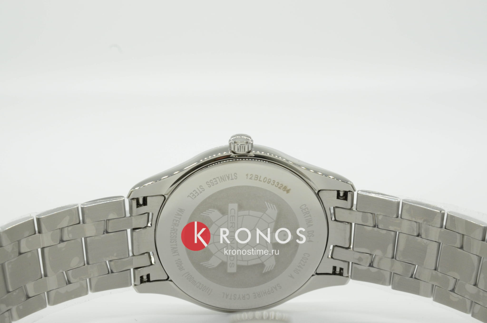 Чёрный циферблат с арабскими цифрами отличается строгостью и лаконичностью, браслет из хирургической стали 316L стильно смотрится на запястье. Стрелки с люминесцентным покрытиемЛюминесцентное покрытиеПозволяет считывать показания времени в темноте. Производители наносят на стрелки, часовые индексы, безель или поверхность циферблата светонакопительный состав, дающий холодное свечение. позволяют считывать показания с циферблата в темноте. Высокоточный кварцевый механизм ETA E64.111. Надёжное стекло из сапфира с антибликовым покрытием. Концепция DS Concept DS ConceptDouble Security Concept, обозначает двойную надёжность и безупречную точность часов Certina. Двойная система защиты подразумевает обеспечение максимальной устойчивости к ударам и высоких показателей водонепроницаемости.. Водостойкость 100 метров. Апертура даты. Диаметр корпуса: 37 мм.