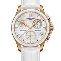 Утончённый перламутровый циферблат поможет отразить вашу женственную натуру, а также стремление окружить себя стильными вещами. Привлекательно смотрятся оригинально оформленные окошки-счётчики. Индикатор в положении 10 часов отображает лунные фазы, добавляя модели изысканности вместе с миниатюрной бриллиантовой звездой. Высокоточный кварцевый механизм G10.962 BH Precidrive™Precidrive™Инновационный кварцевый механизм Certina. Часы, оснащённые этим швейцарским калибром, приравниваются к точности к сертифицированным хронометрам, точность хода составляет +/-10 секунд в год. производства Швейцарии. Гранёный керамический безельБезельВнешний ободок, закрепляющий стекло. В спортивных часах так называется поворотное кольцо с делениями на циферблате, выполняет роль таймера – замеряет отрезки времени на шкале. Неподвижный безель – элемент декора. Однонаправленно вращающийся безель на дайверских часах позволяет фиксировать моменты погружения и выныривания на поверхность.. Сапфировое стекло с двухсторонним антибликовым покрытием. Корпус из стали 316L с PVD-финишемPVDУльтратонкое покрытие наносится в технике вакуумного напыления, сочетает в себе нитрид титана особой прочности со слоем золота или оксида хрома. Несёт в себе декоративную или защитную функцию.. Белый кожаный ремешок. Водостойкость 10 бар. . Функция EOLEOLПредставляет собой систему, уведомляющую владельца часов о необходимости замены элемента питания. За 2 недели до полного разряда батарейки секундная стрелка перестаёт ходить чётко и начинает перепрыгивать на 3-4 деления., календарь, хронографХронографФункция позволяет измерять отрезки времени с особой точностью: часы, минуты, секунды. Верным признаком хронографа является наличие на циферблате 3 дополнительных окошек-счётчиков.. Диаметр корпуса: 38 мм.