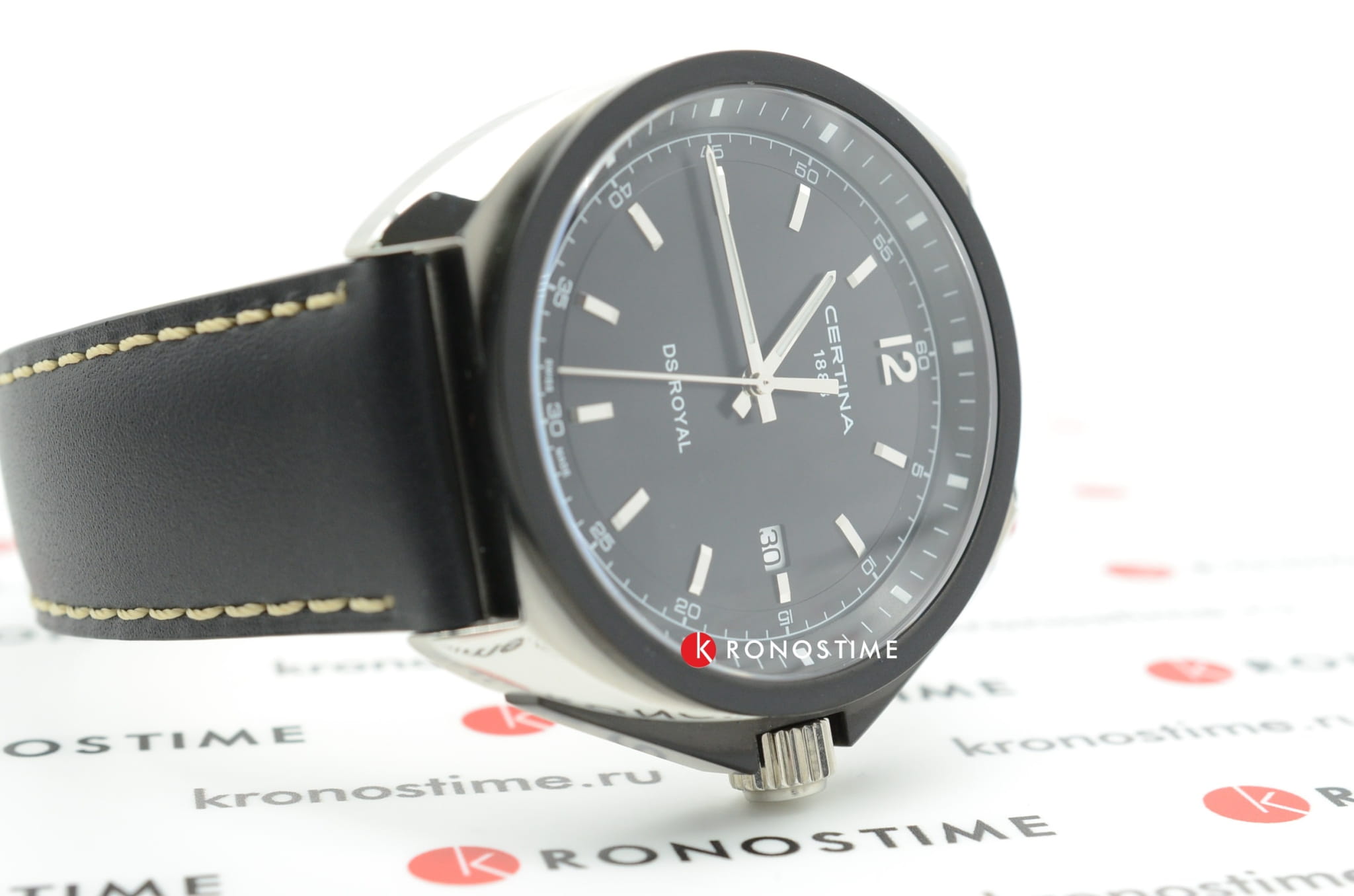 Спортивный дизайн выражен в классическом оформлении. Швейцарский кварцевый механизм ETA 955.112. Чёрный ремешок из натуральной кожи. Сапфировое стекло. Система DS ConceptDS ConceptDouble Security Concept, обозначает двойную надёжность и безупречную точность часов Certina. Двойная система защиты подразумевает обеспечение максимальной устойчивости к ударам и высоких показателей водонепроницаемости.. Частичное PVD-покрытиеPVDУльтратонкое покрытие наносится в технике вакуумного напыления, сочетает в себе нитрид титана особой прочности со слоем золота или оксида хрома. Несёт в себе декоративную или защитную функцию. корпуса. Люминесцентная подсветкаЛюминесцентное покрытиеПозволяет считывать показания времени в темноте. Производители наносят на стрелки, часовые индексы, безель или поверхность циферблата светонакопительный состав, дающий холодное свечение.. Индикация числа.