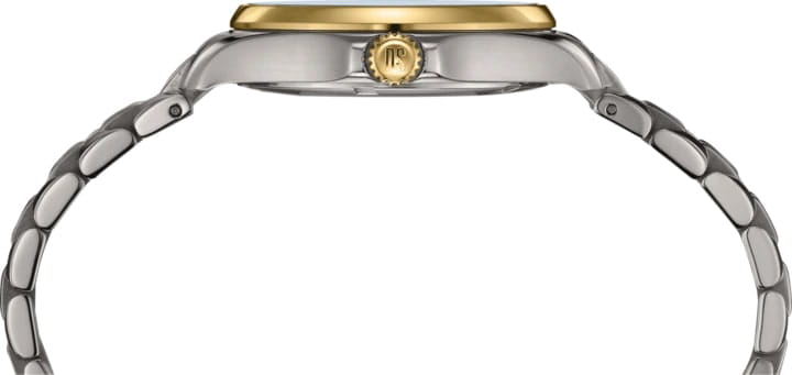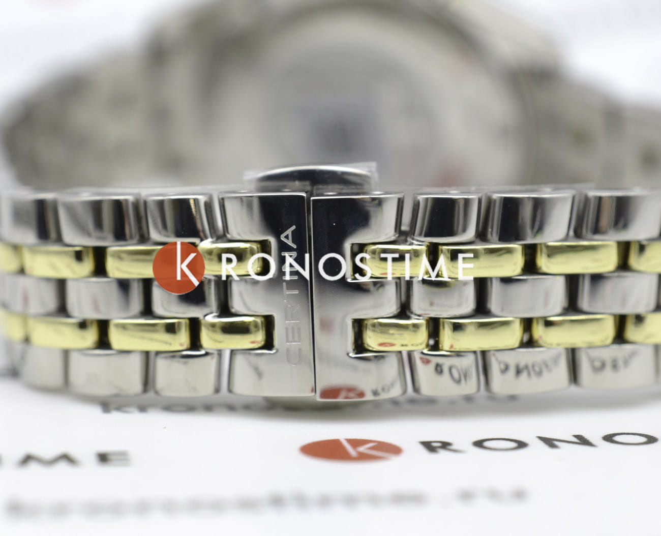 Аксессуар обладает изящным силуэтом, отражающим классический стиль и элегантность. Циферблат украшен 3 роскошными бриллиантами оттенка Top Wesselton. Часы комплектуются высокоточным кварцевым калибром F06.412 от швейцарской компании ETA, высокая точность механизма подтверждается сертификатом хронометра COSCСертификат COSCОфициальный сертификат, подтверждающий то, что часы ходят с особо высокой точностью. Для получения документа часы подвергаются тестовым испытаниям, разработанным швейцарским институтом тестирования хронометров COSC. Допустимая норма для механических часов -4/+6 секунд в день, для кварцевых моделей +/- 0,07 секунд в день.. Концепция DS ConceptDS ConceptDouble Security Concept, обозначает двойную надёжность и безупречную точность часов Certina. Двойная система защиты подразумевает обеспечение максимальной устойчивости к ударам и высоких показателей водонепроницаемости. гарантирует повышенную ударопрочность часов и сохранение водонепроницаемости до 20 бар. Одностороннее антибликовое покрытие сапфирового стекла. Корпус часов изготовлен из титана. Титановый браслет с PVD-покрытиемPVDУльтратонкое покрытие наносится в технике вакуумного напыления, сочетает в себе нитрид титана особой прочности со слоем золота или оксида хрома. Несёт в себе декоративную или защитную функцию. на застёжке-бабочке с кнопкамиЗастёжка "бабочка"Такой вид застёжки дополняется предохранителями, помогающими избежать случайного раскрытия браслета. Обладают изящным исполнением. . Окошко даты, функция EOLEOLПредставляет собой систему, уведомляющую владельца часов о необходимости замены элемента питания. За 2 недели до полного разряда батарейки секундная стрелка перестаёт ходить чётко и начинает перепрыгивать на 3-4 деления.. Диаметр корпуса: 33,8 мм.
