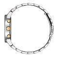 Японские наручные часы Citizen AT2244-84A сочетают в себе современный стиль и расширенные функциональные возможности. Модель выполнена в прочном корпусе из нержавеющей стали диаметром 43 мм и дополнена стальным браслетом с частичным золотистым IP-покрытиемIP-покрытиеМетод ионного напыления. Демонстрирует повышенную устойчивость к истиранию, окислению и химическим веществам. Под воздействием высокого давления и температуры около 1500°C молекулы металла надёжно соединяются с частицами корпуса часов. и удобной раскладной застёжкойРаскладная застёжкаТакой тип застёжки используется только на браслетах из металла. Она никогда не раскрывается полностью, происходит разделение на 2 и более частей. Раскладывающая застёжка снизит вероятность потери часов к минимуму.. Серебристый циферблат оформлен лаконичными метками в виде штрихов, а окошко даты расположено в положении 4 часа для удобного считывания информации. Часы оснащены высокоточным кварцевым механизмом Citizen H504 с функцией хронографаХронографФункция позволяет измерять отрезки времени с особой точностью: часы, минуты, секунды. Верным признаком хронографа является наличие на циферблате 3 дополнительных окошек-счётчиков., позволяющей использовать секундомерСекундомерСекундоме́р — прибор, способный измерять интервалы времени с точностью до долей секунды. с точностью до 1 секунды и максимальным временем измерения до 1 часа. Предусмотрены 12- и 24-часовые форматы отображения времени. Благодаря инновационной системе Eco-Drive часы работают от солнечной энергии и не требуют замены батарейки, обеспечивая запас хода до 150 дней, а также оснащены функциями индикации заряда и предотвращения перезарядки. Минеральное стеклоМинеральное стеклоМинеральное стекло представляет собой искусственно выращенный минерал кварца. Такое стекло отличается особой устойчивостью к повреждениям и царапинам. Уступает по некоторым качествам сапфировому стеклу. надежно защищает циферблат от царапин, а водозащита 30WR позволяет не беспокоиться о случайных брызгах воды. Вес модели составляет 156 грамм, браслет шириной 23 мм и длиной 206,4 мм обеспечивает комфортное ношение. Эти часы станут отличным выбором для тех, кто ценит надежность, стиль и технологичность.