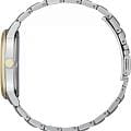 Часы Citizen AW1676-86A – это стильный и практичный аксессуар, созданный в Японии, который подчеркнет статус и вкус своего владельца. Модель оснащена современным кварцевым механизмом с калибром Citizen J810 и инновационной системой Eco-Drive, позволяющей заряжать часы от солнечного света и обеспечивающей автономную работу до 240 дней без необходимости замены батарейки. Прочный корпус диаметром 41,5 мм выполнен из высококачественной стали, а элегантный белый циферблат украшен метками в виде штрихов и римских цифр, дополнен окошком даты для удобства. На безельБезельВнешний ободок, закрепляющий стекло. В спортивных часах так называется поворотное кольцо с делениями на циферблате, выполняет роль таймера – замеряет отрезки времени на шкале. Неподвижный безель – элемент декора. Однонаправленно вращающийся безель на дайверских часах позволяет фиксировать моменты погружения и выныривания на поверхность. и браслет (частично) нанесено золотистое PVD-покрытиеPVDУльтратонкое покрытие наносится в технике вакуумного напыления, сочетает в себе нитрид титана особой прочности со слоем золота или оксида хрома. Несёт в себе декоративную или защитную функцию.. Минеральное стеклоМинеральное стеклоМинеральное стекло представляет собой искусственно выращенный минерал кварца. Такое стекло отличается особой устойчивостью к повреждениям и царапинам. Уступает по некоторым качествам сапфировому стеклу. надежно защищает циферблат от царапин, а водозащита 100WR позволяет не беспокоиться о случайном контакте с водой. Стальной браслет оборудован раскладной застёжкойРаскладная застёжкаТакой тип застёжки используется только на браслетах из металла. Она никогда не раскрывается полностью, происходит разделение на 2 и более частей. Раскладывающая застёжка снизит вероятность потери часов к минимуму. с системой блокировки, обеспечивающей надежную фиксацию на запястье. Завинчивающаяся задняя крышка повышает герметичность корпуса. Часы весят 130 граммов и имеют оптимальную толщину 10,3 мм, что делает их удобными для ежедневного ношения.