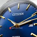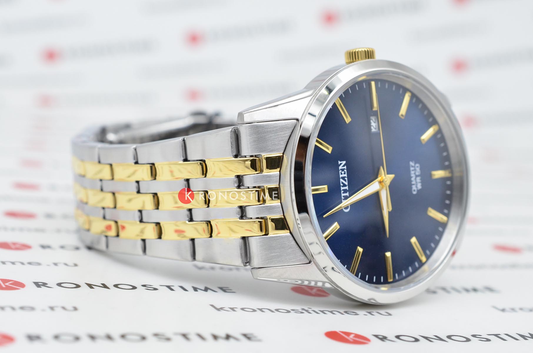 Часы Citizen BI5006-81L сочетают в себе японское качество, современный дизайн и надежность кварцевого механизма Citizen G111. Круглый корпус диаметром 39 мм выполнен из прочной нержавеющей стали, что обеспечивает долговечность и стильный внешний вид. Синий циферблат украшен метками в виде штрихов, а также дополнен окошком календаря с отображением даты и дня недели в позиции «3 часа». Стрелки с люминесцентным покрытиемЛюминесцентное покрытиеПозволяет считывать показания времени в темноте. Производители наносят на стрелки, часовые индексы, безель или поверхность циферблата светонакопительный состав, дающий холодное свечение., что обеспечивает отличную видимость в темноте. Минеральное стеклоМинеральное стеклоМинеральное стекло представляет собой искусственно выращенный минерал кварца. Такое стекло отличается особой устойчивостью к повреждениям и царапинам. Уступает по некоторым качествам сапфировому стеклу. защищает циферблат от царапин и повреждений. Рифленая заводная головка подчеркивает элегантность и практичность модели. Стальной браслет с частичным золотистым IP-покрытиемIP-покрытиеМетод ионного напыления. Демонстрирует повышенную устойчивость к истиранию, окислению и химическим веществам. Под воздействием высокого давления и температуры около 1500°C молекулы металла надёжно соединяются с частицами корпуса часов. оснащен надежной раскладной застёжкойРаскладная застёжкаТакой тип застёжки используется только на браслетах из металла. Она никогда не раскрывается полностью, происходит разделение на 2 и более частей. Раскладывающая застёжка снизит вероятность потери часов к минимуму., что обеспечивает комфортное ношение и подходит для любого случая. Водозащита до 50 метров позволяет не бояться случайных брызг и дождя.