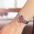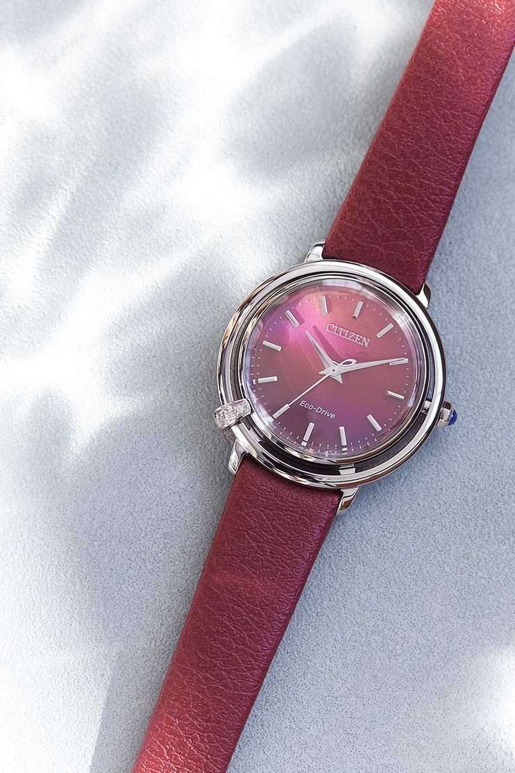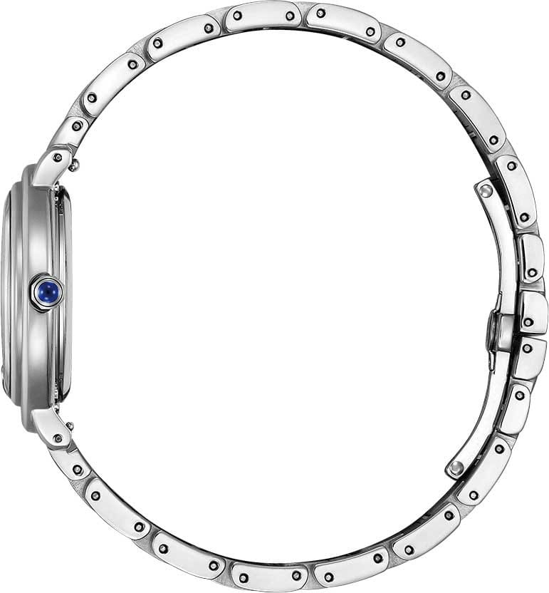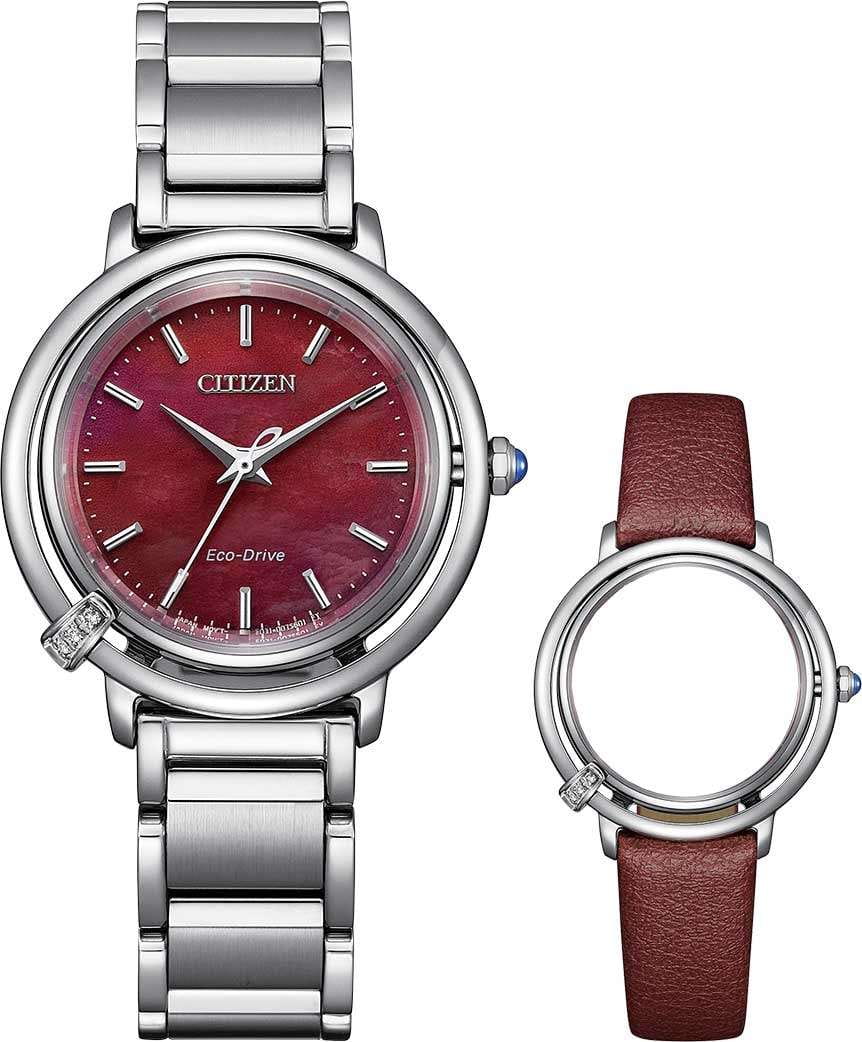 Часы Citizen EM1090-78X – это элегантная модель, созданная в Японии и сочетающая в себе современные технологии и изысканный дизайн. Надежный кварцевый механизм Citizen E031 с инновационной системой Eco-Drive работает от солнечной энергии и не требует замены батарейки, обеспечивая запас хода до 180 дней. Корпус часов выполнен из нержавеющей стали и украшен тремя кристаллами, что придает аксессуару особое сияние. Перламутровый бордовый циферблат с лаконичными метками защищен выпуклым сапфировым стекломСапфировое стеклоПрочный и надёжный материал из кристалла сапфира синтетического происхождения, характеризующийся особой твёрдостью и устойчивостью к царапинам и повреждениям., устойчивым к царапинам. Заводная головка декорирована камнем в форме кабошона, а задняя крышка закреплена на четырех винтах. Стальной браслет оснащен застежкой «бабочка»Застёжка "бабочка"Такой вид застёжки дополняется предохранителями, помогающими избежать случайного раскрытия браслета. Обладают изящным исполнением. и системой быстрой замены, что позволяет легко менять стиль часов в зависимости от вашего настроения. В комплекте также идет сменный бордовый ремешок с такой же застежкой. Водозащита 50WR позволяет не беспокоиться о случайном контакте с водой. Компактные размеры корпуса (диаметр 31,2 мм, толщина 7,8 мм, вес 71 г) обеспечивают комфортное ношение каждый день. Эти часы станут великолепным дополнением к любому образу и подчеркнут вашу индивидуальность.