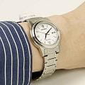 Элегантные часы Citizen FE1220-89A сочетают в себе классический дизайн и современные технологии. Модель изготовлена в Японии и оснащена кварцевым механизмом Citizen J710 с инновационной системой Eco-Drive, которая обеспечивает работу часов за счет солнечной энергии и не требует замены батарейки. Запас хода составляет до 240 дней, а функция индикации заряда позволяет всегда знать уровень энергии. Корпус и браслет выполнены из прочной нержавеющей стали, а надежная раскладная застёжкаРаскладная застёжкаТакой тип застёжки используется только на браслетах из металла. Она никогда не раскрывается полностью, происходит разделение на 2 и более частей. Раскладывающая застёжка снизит вероятность потери часов к минимуму. с системой блокировки обеспечивает дополнительную безопасность при ношении. Белый циферблат украшен окошком даты, а минеральное стеклоМинеральное стеклоМинеральное стекло представляет собой искусственно выращенный минерал кварца. Такое стекло отличается особой устойчивостью к повреждениям и царапинам. Уступает по некоторым качествам сапфировому стеклу. надежно защищает его от повреждений. Водозащита до 100 метров позволяет использовать часы в повседневной жизни и во время активного отдыха. Диаметр корпуса составляет 30 мм, толщина — 8,9 мм, вес — 69 г. Эта модель станет отличным выбором для тех, кто ценит надежность, стиль и современные технологии в одном аксессуаре.
