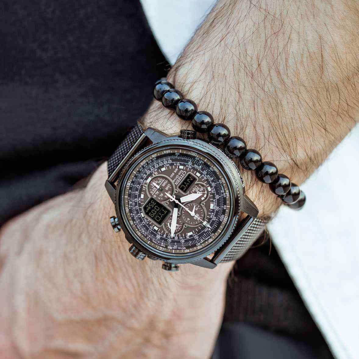 Citizen Promaster JY8037-50E часы-хронографХронографФункция позволяет измерять отрезки времени с особой точностью: часы, минуты, секунды. Верным признаком хронографа является наличие на циферблате 3 дополнительных окошек-счётчиков. с секундомеромСекундомерСекундоме́р — прибор, способный измерять интервалы времени с точностью до долей секунды. спортивного дизайна с высоким уровнем водозащиты. Корпус из нержавеющей стали с IP-покрытиемIP-покрытиеМетод ионного напыления. Демонстрирует повышенную устойчивость к истиранию, окислению и химическим веществам. Под воздействием высокого давления и температуры около 1500°C молекулы металла надёжно соединяются с частицами корпуса часов. диаметром 47,1 мм идеально сбалансирован. Минеральное стеклоМинеральное стеклоМинеральное стекло представляет собой искусственно выращенный минерал кварца. Такое стекло отличается особой устойчивостью к повреждениям и царапинам. Уступает по некоторым качествам сапфировому стеклу. обеспечивает отличную защиту циферблата от царапин. Часы работают на основе кварцевого механизма, питание от солнечной энергии. Стальной браслет миланского плетения на застёжке-бабочке с кнопкамиЗастёжка "бабочка"Такой вид застёжки дополняется предохранителями, помогающими избежать случайного раскрытия браслета. Обладают изящным исполнением. идеально дополняют дизайн часов, обеспечивая комфортное ношение. Стрелки и метки на циферблате имеют люминесцентное покрытиеЛюминесцентное покрытиеПозволяет считывать показания времени в темноте. Производители наносят на стрелки, часовые индексы, безель или поверхность циферблата светонакопительный состав, дающий холодное свечение. позволяющее легко определять время даже в темноте. Поворотный безельБезельВнешний ободок, закрепляющий стекло. В спортивных часах так называется поворотное кольцо с делениями на циферблате, выполняет роль таймера – замеряет отрезки времени на шкале. Неподвижный безель – элемент декора. Однонаправленно вращающийся безель на дайверских часах позволяет фиксировать моменты погружения и выныривания на поверхность.. Автоматический прием сигналов от радиовышек, расположенных в различных точках земного шара, которые передают временные сигналы от определенных атомных часов. Коррекция текущего времени радиосигналом на территории почти всей Европы, США, Японии и Китая. Функция индикации заряда (EOL) и предотвращения перезарядки. Мировое времяМировое время Полезное часовое усложнение, отображающее время в основных городах и известных областях по всему миру, оно связано с часовыми поясами, удобно для путешественников и бизнесменов. - 43 города (29 часовых поясов), переход на зимнее и летнее время. ТаймерТаймерОтсчитывает секунды в обратном направлении в заданном интервале времени. обратного отсчета до 99мин. Секундомер с точностью 1сек и временем измерения 1ч. 12-ти и 24-х часовой формат. Логарифмическая линейка. Часы обладают впечатляющей водонепроницаемостью до 200WR, что делает их идеальными для плавания, ныряния и погружений с аквалангом.