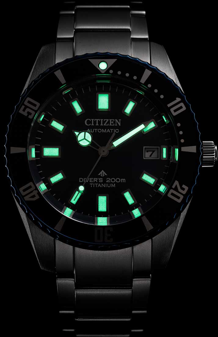 Citizen Promaster NB6026-56L - спортивный характер этих часов оценят современные мужчины, которые отдают предпочтение практичным и функциональным вещам. Лимитированная серия - 4500 экземпляров. Модель вдохновлена часами Citizen Challenge Diver 1977 года и посвящена 35-ти летию линейки Promaster. Сертифицированные часы для дайвинга (ISO 6425). Корпус из титана (Super Titanium™) диаметром 41 мм идеально сбалансирован. Сапфировое стеклоСапфировое стеклоПрочный и надёжный материал из кристалла сапфира синтетического происхождения, характеризующийся особой твёрдостью и устойчивостью к царапинам и повреждениям. с антибликовым покрытием обеспечивает отличную защиту циферблата от царапин. Титановый браслет на раскладной застёжкеРаскладная застёжкаТакой тип застёжки используется только на браслетах из металла. Она никогда не раскрывается полностью, происходит разделение на 2 и более частей. Раскладывающая застёжка снизит вероятность потери часов к минимуму. с удлинением для дайверов идеально дополняют дизайн часов, обеспечивая комфортное ношение. Стрелки и метки на циферблате имеют люминесцентное покрытиеЛюминесцентное покрытиеПозволяет считывать показания времени в темноте. Производители наносят на стрелки, часовые индексы, безель или поверхность циферблата светонакопительный состав, дающий холодное свечение. позволяющее легко определять время даже в темноте. Титановый безельБезельВнешний ободок, закрепляющий стекло. В спортивных часах так называется поворотное кольцо с делениями на циферблате, выполняет роль таймера – замеряет отрезки времени на шкале. Неподвижный безель – элемент декора. Однонаправленно вращающийся безель на дайверских часах позволяет фиксировать моменты погружения и выныривания на поверхность. с DLC-покрытиемDLC-покрытиеDiamond like carbon - одно из лучших видов покрытия, представляющее собой углерод с алмазными свойствами. На поверхность материала наносятся распавшиеся молекулы углерода, превращающиеся в плёнку из алмазоподобных связей, которая перенимает твёрдость алмаза. вращается в одном направлении. Запас хода 42 часа. Защищены от магнитных полей - 16000A/m. Окошко даты находится в положении 3 часа. Часы обладают впечатляющей водонепроницаемостью до 200WR, что делает их идеальными для плавания, ныряния и погружений с аквалангом. Завинчивающаяся задняя крышка и заводная головка.