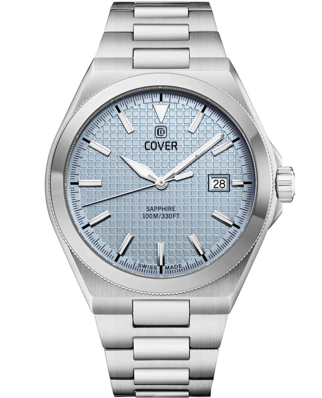Cover CO213.06 – элегантные мужские часы, сочетающие классический дизайн и современные технологии. Корпус диаметром 41 мм выполнен из нержавеющей стали 316L, что обеспечивает прочность и долговечность. Светло-голубой циферблат с геометрическим узором с чёткими часовыми метками и стрелками, покрытыми люминесцентным покрытиемЛюминесцентное покрытиеПозволяет считывать показания времени в темноте. Производители наносят на стрелки, часовые индексы, безель или поверхность циферблата светонакопительный состав, дающий холодное свечение., гарантирует отличную читаемость в любых условиях и придает свежий и современный вид, а его поверхность защищена сапфировым стекломСапфировое стеклоПрочный и надёжный материал из кристалла сапфира синтетического происхождения, характеризующийся особой твёрдостью и устойчивостью к царапинам и повреждениям., устойчивым к царапинам. Часы оснащены швейцарским кварцевым механизмом, обеспечивающим точный ход и надёжность. Браслет из нержавеющей стали оснащён раскладной застёжкойРаскладная застёжкаТакой тип застёжки используется только на браслетах из металла. Она никогда не раскрывается полностью, происходит разделение на 2 и более частей. Раскладывающая застёжка снизит вероятность потери часов к минимуму., обеспечивающей удобную и надёжную фиксацию на запястье. Водонепроницаемость до 100 метров, позволит плавать, нырять и заниматься другими водными видами спорта.