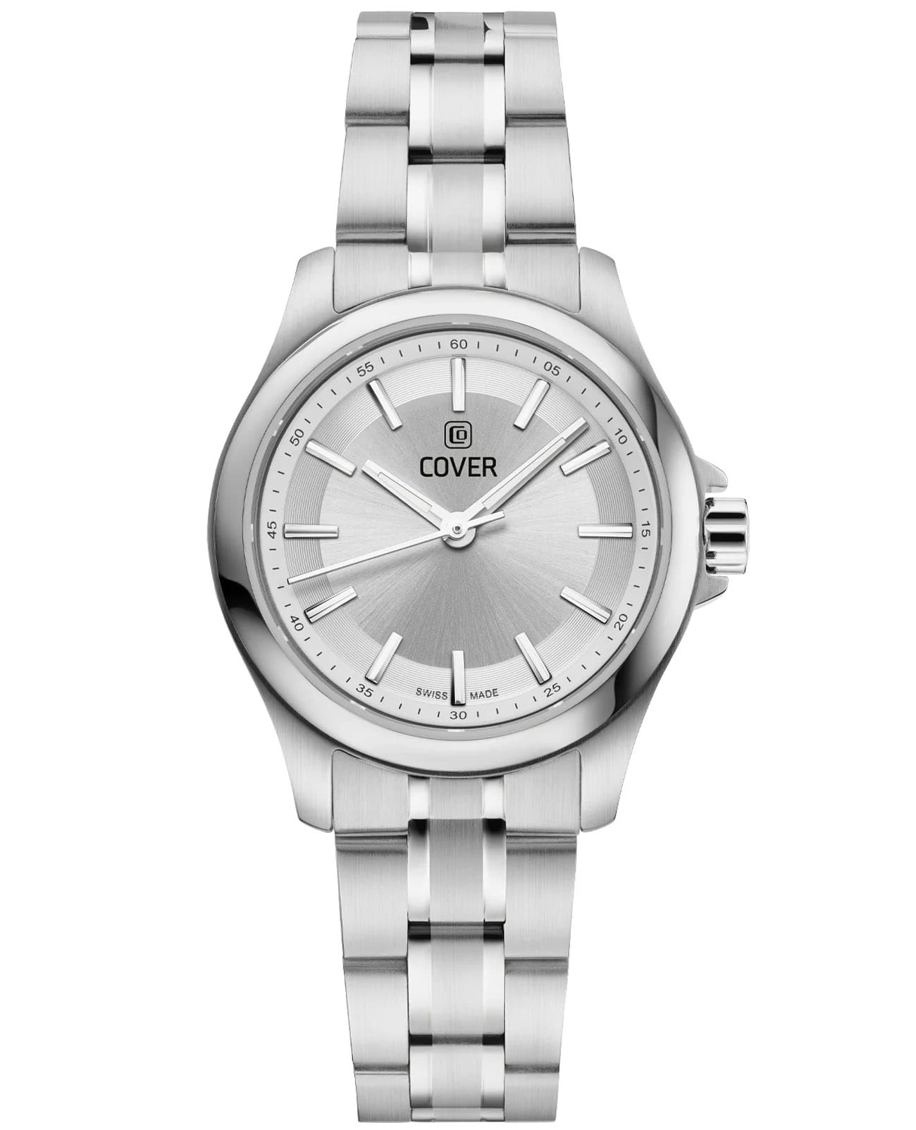 Cover CO215.02 – элегантные женские часы, сочетающие классический дизайн и современные технологии. Корпус диаметром 28 мм выполнен из нержавеющей стали 316L, что обеспечивает прочность и долговечность. Циферблат с чёткими часовыми метками и стрелками, покрытыми люминесцентным покрытиемЛюминесцентное покрытиеПозволяет считывать показания времени в темноте. Производители наносят на стрелки, часовые индексы, безель или поверхность циферблата светонакопительный состав, дающий холодное свечение., гарантирует отличную читаемость в любых условиях, а его поверхность защищена сапфировым стекломСапфировое стеклоПрочный и надёжный материал из кристалла сапфира синтетического происхождения, характеризующийся особой твёрдостью и устойчивостью к царапинам и повреждениям., устойчивым к царапинам. Часы оснащены швейцарским кварцевым механизмом, обеспечивающим точный ход и надёжность. Браслет из нержавеющей стали оснащён раскладной застёжкойРаскладная застёжкаТакой тип застёжки используется только на браслетах из металла. Она никогда не раскрывается полностью, происходит разделение на 2 и более частей. Раскладывающая застёжка снизит вероятность потери часов к минимуму., обеспечивающей удобную и надёжную фиксацию на запястье. Водонепроницаемость до 100 метров, позволит плавать, нырять и заниматься другими водными видами спорта.