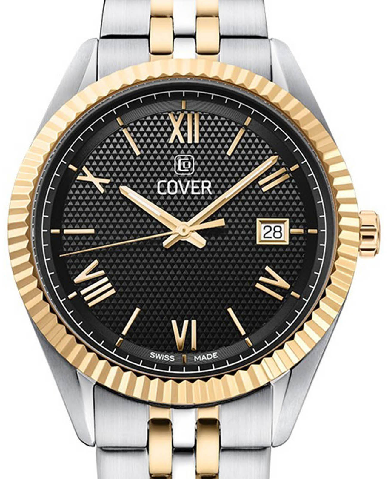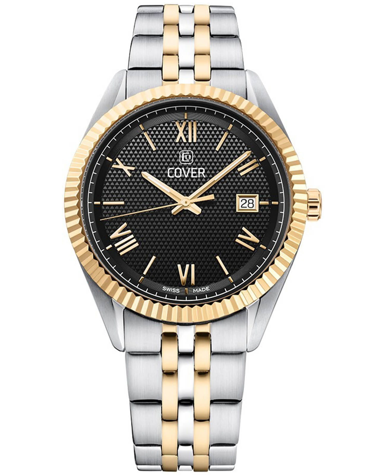 Cover Alston CO216.05 – элегантные мужские часы, сочетающие современный стиль и классическую элегантность. Корпус диаметром 40 мм выполнен из нержавеющей стали, что обеспечивает прочность и долговечность. Циферблат черного цвета с тонким треугольным узором придаёт часам изысканный вид, а его поверхность защищена минеральным стекломМинеральное стеклоМинеральное стекло представляет собой искусственно выращенный минерал кварца. Такое стекло отличается особой устойчивостью к повреждениям и царапинам. Уступает по некоторым качествам сапфировому стеклу.. Часы оснащены швейцарским кварцевым механизмом, обеспечивающим точный ход и надёжность. Функциональность дополняется окошком даты, расположенным на позиции «3 часа». Браслет и безельБезельВнешний ободок, закрепляющий стекло. В спортивных часах так называется поворотное кольцо с делениями на циферблате, выполняет роль таймера – замеряет отрезки времени на шкале. Неподвижный безель – элемент декора. Однонаправленно вращающийся безель на дайверских часах позволяет фиксировать моменты погружения и выныривания на поверхность. изготовлены из нержавеющей стали с PVDPVDУльтратонкое покрытие наносится в технике вакуумного напыления, сочетает в себе нитрид титана особой прочности со слоем золота или оксида хрома. Несёт в себе декоративную или защитную функцию. покрытием, также браслет оснащён раскладной застёжкойРаскладная застёжкаТакой тип застёжки используется только на браслетах из металла. Она никогда не раскрывается полностью, происходит разделение на 2 и более частей. Раскладывающая застёжка снизит вероятность потери часов к минимуму., обеспечивающей удобную и надёжную фиксацию на запястье. Водонепроницаемость до 50 метров (5 ATM) позволяет использовать часы в повседневной жизни, защищая их от случайных брызг и дождя.