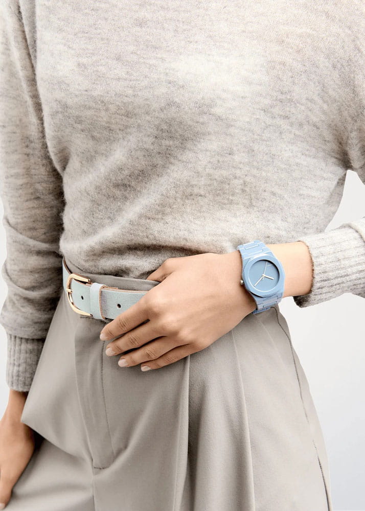 Часы D1 Milano Ceramic Pure Indigo CEBU05 – роскошный аксессуар для современных женщин и мужчин. Кварцевые часы с корпусом из голубой керамики. Минималистичный дизайн циферблата, защищенный прочным сапфировым стекломСапфировое стеклоПрочный и надёжный материал из кристалла сапфира синтетического происхождения, характеризующийся особой твёрдостью и устойчивостью к царапинам и повреждениям. с антибликовым покрытиемАнтибликовое покрытиеСлой оксида металла в 0,13-0,3 микрон, благодаря которому стекло часов не бликует и не отражает свет. Антибликовое покрытие уменьшает отражение света в 10 раз, обеспечивая отличную читаемость показателей циферблата., привлекает внимание своей сдержанной красотой. Циферблат лаконичный, без индексов, с надписью бренда. Изысканные стрелки из латуни с люминесцентным покрытиемЛюминесцентное покрытиеПозволяет считывать показания времени в темноте. Производители наносят на стрелки, часовые индексы, безель или поверхность циферблата светонакопительный состав, дающий холодное свечение.. Стальная задняя крышка с PVD-покрытиемPVDУльтратонкое покрытие наносится в технике вакуумного напыления, сочетает в себе нитрид титана особой прочности со слоем золота или оксида хрома. Несёт в себе декоративную или защитную функцию. закреплена на 4 винтах, что обеспечивает надежность конструкции. Элегантный керамический браслет с застёжкой «бабочка» с кнопкамиЗастёжка "бабочка"Такой вид застёжки дополняется предохранителями, помогающими избежать случайного раскрытия браслета. Обладают изящным исполнением. . Водозащита 50 метров защищает часы от брызг и дождя, делая их подходящими для повседневного использования. Часы сочетают в себе классический дизайн и современные технологии производства.