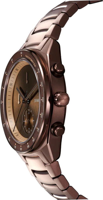 Элегантный хронограф D1 Milano Cronografo Essential Brown CHBJ22 - идеальное воплощение мужественности и стиля. Этот многофункциональный аксессуар оснащен секундомером, тахиметромТахиметрРазмеченная шкала, располагается на ободке или безеле часов. Тахиметр позволяет рассчитать скорость на определённом участке пути, расстояние измеряется в километрах или милях.. что делает его незаменимым компаньоном в повседневной жизни. Изысканный корпус и браслет выполнены из стали с PVD-покрытиемPVDУльтратонкое покрытие наносится в технике вакуумного напыления, сочетает в себе нитрид титана особой прочности со слоем золота или оксида хрома. Несёт в себе декоративную или защитную функцию.. Минималистичный дизайн циферблата, защищенный прочным сапфировым стекломСапфировое стеклоПрочный и надёжный материал из кристалла сапфира синтетического происхождения, характеризующийся особой твёрдостью и устойчивостью к царапинам и повреждениям. с антибликовым покрытиемАнтибликовое покрытиеСлой оксида металла в 0,13-0,3 микрон, благодаря которому стекло часов не бликует и не отражает свет. Антибликовое покрытие уменьшает отражение света в 10 раз, обеспечивая отличную читаемость показателей циферблата., привлекает внимание своей сдержанной красотой.  Стрелки с люминесцентным покрытиемЛюминесцентное покрытиеПозволяет считывать показания времени в темноте. Производители наносят на стрелки, часовые индексы, безель или поверхность циферблата светонакопительный состав, дающий холодное свечение., обеспечивающим хорошую читаемость в темноте. Надежная конструкция с задней крышкой на 8 винтах и стильный браслет с удобной застёжкой «бабочка» с кнопкамиЗастёжка "бабочка"Такой вид застёжки дополняется предохранителями, помогающими избежать случайного раскрытия браслета. Обладают изящным исполнением. обеспечивают комфорт при ношении.  Водозащита 50 метров защищает часы от брызг и дождя, делая их подходящими для повседневного использования. Это не просто часы, а статусный аксессуар, подчеркивающий безупречный вкус и внимание к деталям своего владельца.