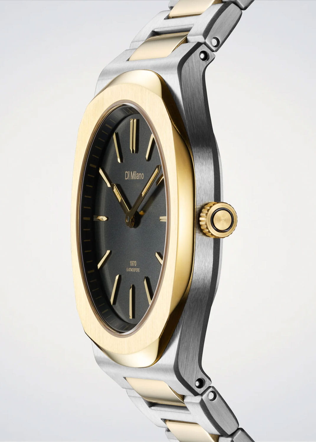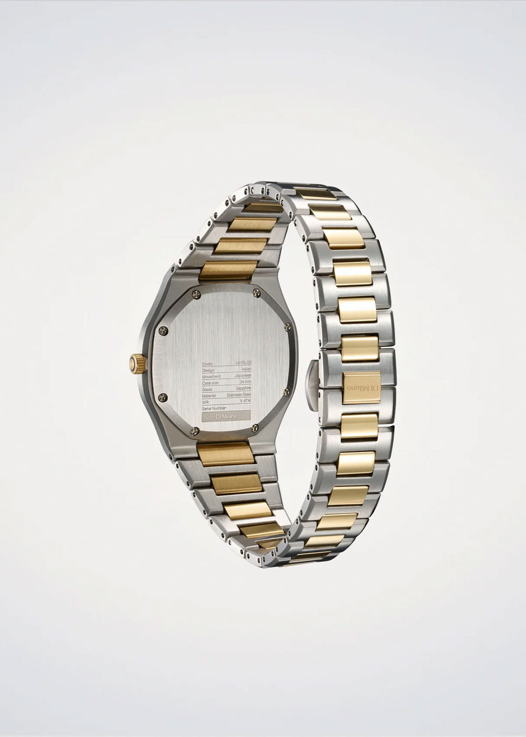 Женские кварцевые часы D1 Milano Ultra Thin UHBL03 — это стильное сочетание элегантности и современного дизайна. Изящный ультратонкий корпус выполнен из нержавеющей стали, диаметром 34 мм, что придаст образу элегантности и надежности. Изысканный циферблат с метками в виде штрихов придает модели особый блеск. Циферблат защищен сапфировым стекломСапфировое стеклоПрочный и надёжный материал из кристалла сапфира синтетического происхождения, характеризующийся особой твёрдостью и устойчивостью к царапинам и повреждениям. с антибликовым покрытиемАнтибликовое покрытиеСлой оксида металла в 0,13-0,3 микрон, благодаря которому стекло часов не бликует и не отражает свет. Антибликовое покрытие уменьшает отражение света в 10 раз, обеспечивая отличную читаемость показателей циферблата., обеспечивающий устойчивость к царапинам. БезельБезельВнешний ободок, закрепляющий стекло. В спортивных часах так называется поворотное кольцо с делениями на циферблате, выполняет роль таймера – замеряет отрезки времени на шкале. Неподвижный безель – элемент декора. Однонаправленно вращающийся безель на дайверских часах позволяет фиксировать моменты погружения и выныривания на поверхность. с PVD-покрытиемPVDУльтратонкое покрытие наносится в технике вакуумного напыления, сочетает в себе нитрид титана особой прочности со слоем золота или оксида хрома. Несёт в себе декоративную или защитную функцию. золотистого цвета. Стрелки с люминесцентным покрытиемЛюминесцентное покрытиеПозволяет считывать показания времени в темноте. Производители наносят на стрелки, часовые индексы, безель или поверхность циферблата светонакопительный состав, дающий холодное свечение.. Часы оснащены надежным кварцевым механизмом. Стальной браслет с частичным PVD-покрытиемPVDУльтратонкое покрытие наносится в технике вакуумного напыления, сочетает в себе нитрид титана особой прочности со слоем золота или оксида хрома. Несёт в себе декоративную или защитную функцию. на застёжке-бабочке с кнопкамиЗастёжка "бабочка"Такой вид застёжки дополняется предохранителями, помогающими избежать случайного раскрытия браслета. Обладают изящным исполнением. , гарантирует комфортное и безопасное ношение. Класс водозащиты: 50 метров позволит защитить корпус от случайных брызг или капель дождя. Индивидуальный серийный номер. Отличный выбор для тех, кто ценит утонченность и качество.