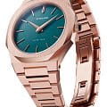 Наручные часы D1 Milano UTBU02 из коллекции Ultra Thin Skeleton сочетают в себе элегантный дизайн и современные технологии. Модель обладает круглым корпусом диаметром 38 мм, изготовленным из нержавеющей стали с PVD-покрытиемPVDУльтратонкое покрытие наносится в технике вакуумного напыления, сочетает в себе нитрид титана особой прочности со слоем золота или оксида хрома. Несёт в себе декоративную или защитную функцию. золотого цвета, что обеспечивает высокую устойчивость к внешним воздействиям. Для защиты циферблата используется сапфировое стеклоСапфировое стеклоПрочный и надёжный материал из кристалла сапфира синтетического происхождения, характеризующийся особой твёрдостью и устойчивостью к царапинам и повреждениям., которое эффективно противостоит царапинам и механическим повреждениям. Водонепроницаемость модели достигает 5 атмосфер (50 метров), что позволяет использовать их при контакте с водой, например, во время мытья рук или дождя. Браслет выполнен из нержавеющей стали с раскладной застежкойРаскладной замокДанный вариант застежки используется только на часах с металлическим браслетом. Отличительная особенность такого крепления в том, что длина браслета становится универсальной и вы можете самостоятельно отрегулировать нужный вам размер – застежка просто двигается по браслету часов., обеспечивающей комфортное ношение и безопасность. Циферблат с метками в виде штрихов придает часам изысканность и делает их идеальным выбором для повседневного использования или особых случаев.