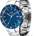 Daniel Wellington — мужские часы в современном спортивно-элегантном стиле. Круглый корпус диаметром 40 мм изготовлен из нержавеющей стали и дополнен синим безелемБезельВнешний ободок, закрепляющий стекло. В спортивных часах так называется поворотное кольцо с делениями на циферблате, выполняет роль таймера – замеряет отрезки времени на шкале. Неподвижный безель – элемент декора. Однонаправленно вращающийся безель на дайверских часах позволяет фиксировать моменты погружения и выныривания на поверхность. из анодированного алюминия, которое придаёт модели выразительный характер.