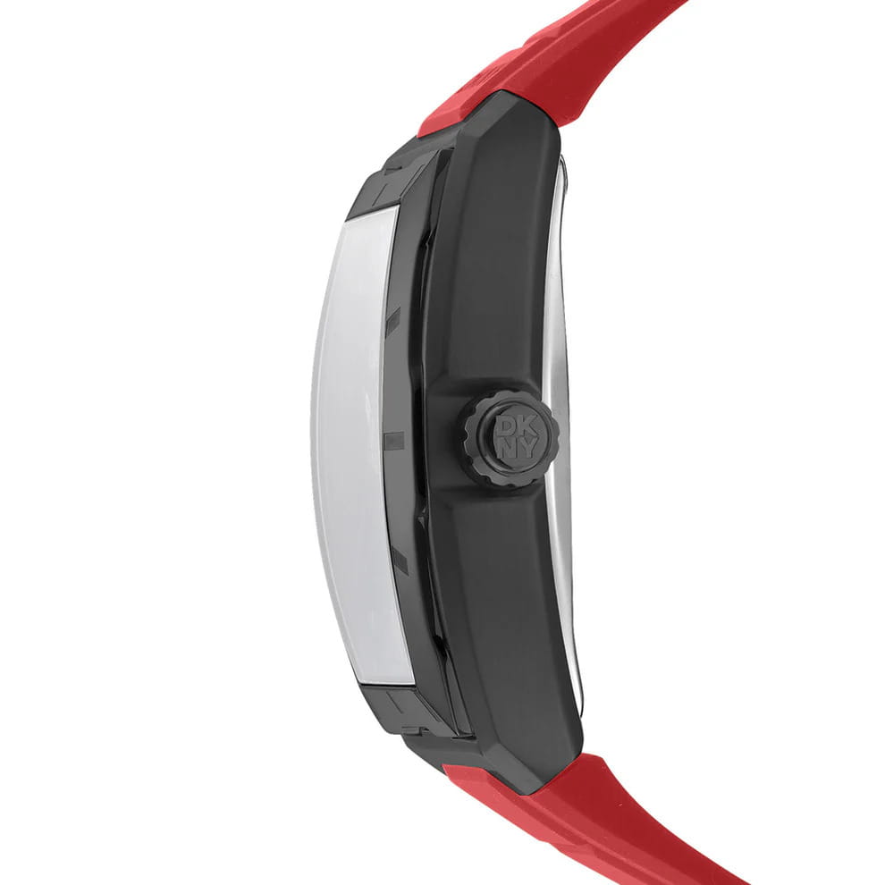DKNY Urban Automatic DK1G048P0065 — это мужские часы в стиле urban-luxury, сочетающие в себе брутальный дизайн, надежность механического механизма и современную эстетику. Модель выделяется бочкообразным корпусом из нержавеющей стали диаметром 51 мм с IP-покрытиемIP-покрытиеМетод ионного напыления. Демонстрирует повышенную устойчивость к истиранию, окислению и химическим веществам. Под воздействием высокого давления и температуры около 1500°C молекулы металла надёжно соединяются с частицами корпуса часов. и минеральным стекломМинеральное стеклоМинеральное стекло представляет собой искусственно выращенный минерал кварца. Такое стекло отличается особой устойчивостью к повреждениям и царапинам. Уступает по некоторым качествам сапфировому стеклу., которое обеспечивает защиту от царапин. Красный циферблат с люминесцентным покрытиемЛюминесцентное покрытиеПозволяет считывать показания времени в темноте. Производители наносят на стрелки, часовые индексы, безель или поверхность циферблата светонакопительный состав, дающий холодное свечение. для четкой видимости.