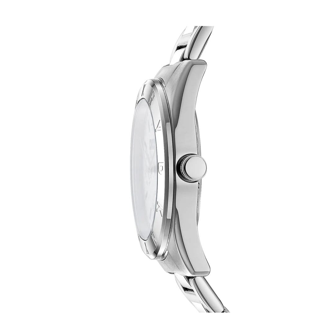Женские наручные часы DKNY DK1L015M0015 – модель сочетает в себе элегантный дизайн и спортивный дух, что делает ее идеальным аксессуаром для современных активных женщин. Корпус из нержавеющей стали диаметром 36 мм и минеральное стеклоМинеральное стеклоМинеральное стекло представляет собой искусственно выращенный минерал кварца. Такое стекло отличается особой устойчивостью к повреждениям и царапинам. Уступает по некоторым качествам сапфировому стеклу. обеспечивает защиту от царапин, а водонепроницаемость до 50 метров делает модель практичной для активного отдыха или повседневной носки. Браслет из нержавеющей стали с раскладной застёжкойРаскладная застёжкаТакой тип застёжки используется только на браслетах из металла. Она никогда не раскрывается полностью, происходит разделение на 2 и более частей. Раскладывающая застёжка снизит вероятность потери часов к минимуму. надежно фиксирует часы на руке. DKNY Chambers Multi Sport – идеально подойдут для девушек, ценящих утонченность и функциональность в аксессуарах, станут прекрасным дополнением к любому образу, от повседневного до вечернего.