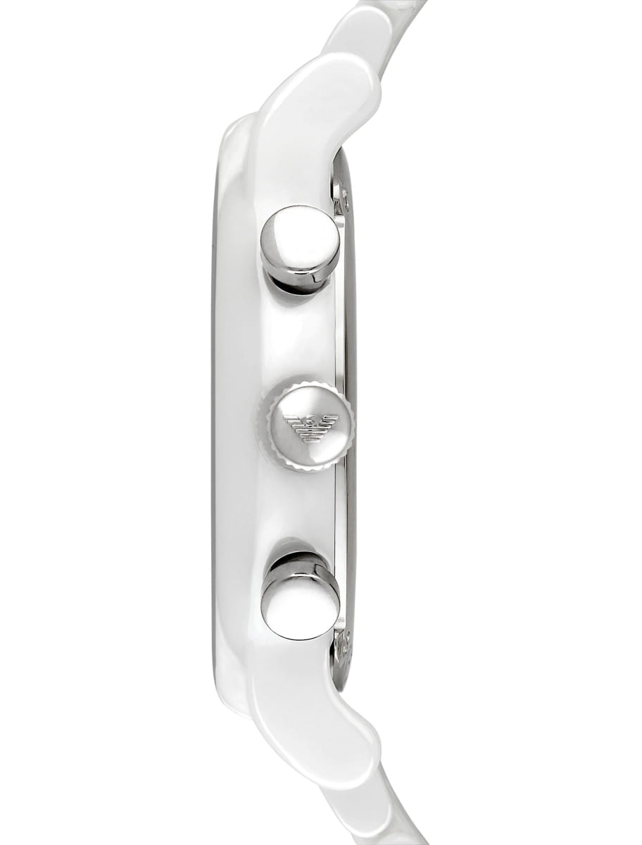 Мужские кварцевые часы Emporio Armani из серии Luigi — это стильный аксессуар, сочетающий современный дизайн и высокую надёжность. Корпус выполнен из комбинированных материалов: стали 316 и керамики, что обеспечивает прочность и устойчивость к царапинам. Часы защищены сапфировым стекломСапфировое стеклоПрочный и надёжный материал из кристалла сапфира синтетического происхождения, характеризующийся особой твёрдостью и устойчивостью к царапинам и повреждениям. с антибликовым покрытиемАнтибликовое покрытиеСлой оксида металла в 0,13-0,3 микрон, благодаря которому стекло часов не бликует и не отражает свет. Антибликовое покрытие уменьшает отражение света в 10 раз, обеспечивая отличную читаемость показателей циферблата., обеспечивающим отличную читаемость при любом освещении. Циферблат круглой формы выполнен в белом цвете, индикация представлена метками, окошко даты расположено на отметке 3 часа. Часы оснащены функцией хронографаХронографФункция позволяет измерять отрезки времени с особой точностью: часы, минуты, секунды. Верным признаком хронографа является наличие на циферблате 3 дополнительных окошек-счётчиков., позволяющей измерять промежутки времени. Браслет изготовлен из керамики белого цвета и фиксируется на застёжке «бабочка» с кнопкамиЗастёжка "бабочка"Такой вид застёжки дополняется предохранителями, помогающими избежать случайного раскрытия браслета. Обладают изящным исполнением. , обеспечивающей удобство и надёжность ношения. Механизм — японский кварцевый, гарантирующий точное отсчёт времени. Водонепроницаемость составляет 50 WR, что позволяет использовать часы в повседневных условиях, защищая от случайных брызг и капель дождя. Модель подчёркивает индивидуальность и хороший вкус владельца, идеально подходя как для повседневного, так и для делового образа.