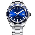 Мужские механические часы с автоподзаводом Epos из коллекции Diver — это надёжный инструмент для активного образа жизни. Корпус диаметром 41 мм и толщиной 12 мм выполнен из нержавеющей стали 316L. Циферблат синего цвета оформлен с матовой поверхностью, с печатными индексами и стрелками с покрытием цвета родия. Циферблат защищён сапфировым стекломСапфировое стеклоПрочный и надёжный материал из кристалла сапфира синтетического происхождения, характеризующийся особой твёрдостью и устойчивостью к царапинам и повреждениям.. Стрелки и метки с люминесцентным покрытиемЛюминесцентное покрытиеПозволяет считывать показания времени в темноте. Производители наносят на стрелки, часовые индексы, безель или поверхность циферблата светонакопительный состав, дающий холодное свечение. Super-Luminova, обеспечивающим отличную читаемость в темноте. Механизм — швейцарский калибр ETA 2824. Окошко даты расположено в положении 3 часов. БезельБезельВнешний ободок, закрепляющий стекло. В спортивных часах так называется поворотное кольцо с делениями на циферблате, выполняет роль таймера – замеряет отрезки времени на шкале. Неподвижный безель – элемент декора. Однонаправленно вращающийся безель на дайверских часах позволяет фиксировать моменты погружения и выныривания на поверхность. — однонаправленный вращающийся, с PVD-покрытиемPVDУльтратонкое покрытие наносится в технике вакуумного напыления, сочетает в себе нитрид титана особой прочности со слоем золота или оксида хрома. Несёт в себе декоративную или защитную функцию.. и шкалой погружений, что делает часы пригодными для дайвинга. Завинчивающаяся коронка и задняя крышка обеспечивают повышенную защиту. Часы оснащены стальным браслетом с литыми звеньями в 3 ряда и раскладной застёжкойРаскладная застёжкаТакой тип застёжки используется только на браслетах из металла. Она никогда не раскрывается полностью, происходит разделение на 2 и более частей. Раскладывающая застёжка снизит вероятность потери часов к минимуму. с дополнительным фиксатором. Водонепроницаемость 200 м позволяет использовать часы для глубоководных погружений. Гарантия — 24 месяца. Идеальный выбор для тех, кто ценит точность, прочность и функциональность.