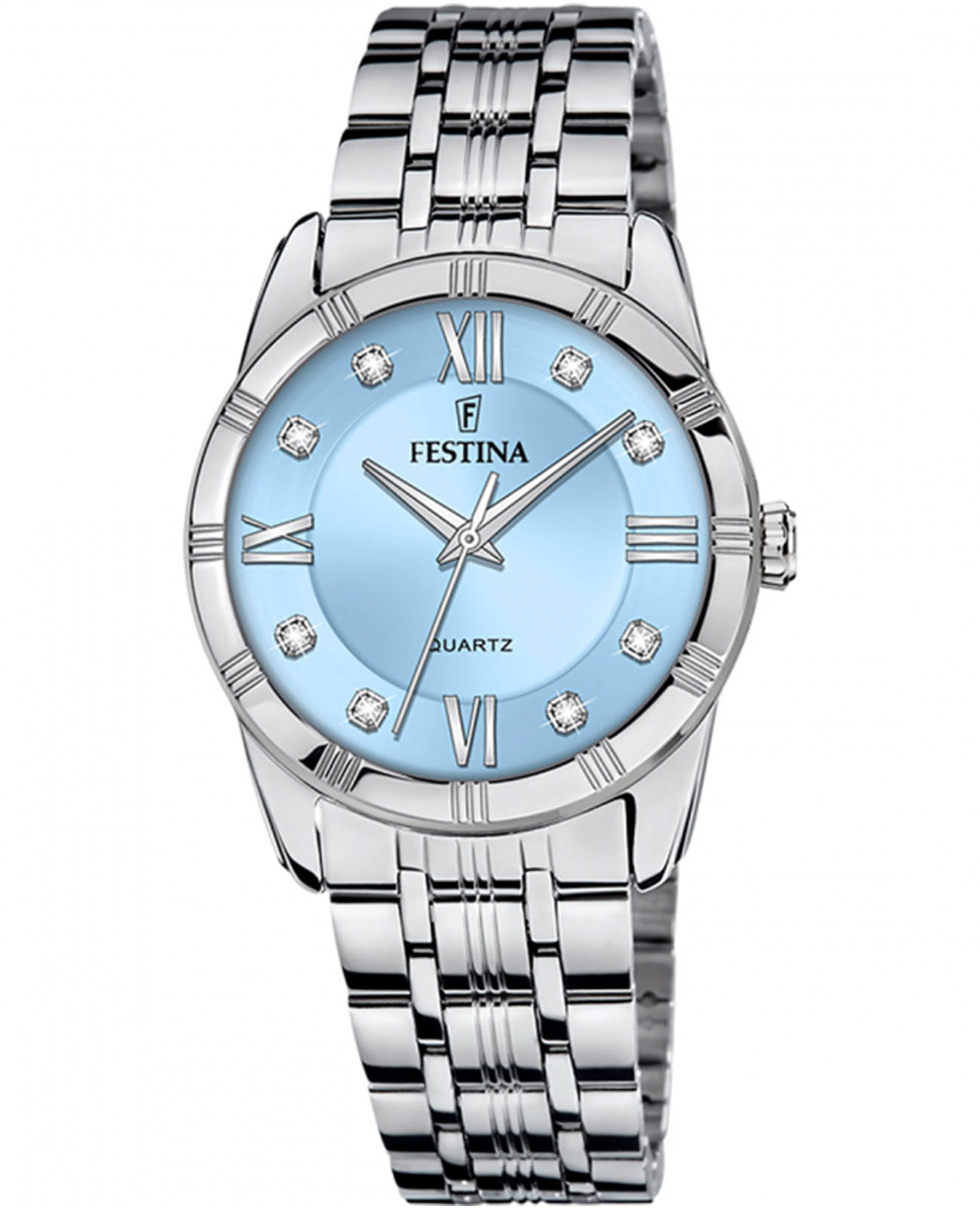 Женские кварцевые часы с минеральным стекломМинеральное стеклоМинеральное стекло представляет собой искусственно выращенный минерал кварца. Такое стекло отличается особой устойчивостью к повреждениям и царапинам. Уступает по некоторым качествам сапфировому стеклу., кварцевый механизм с высокой точностью. Класс водозащиты: 50 метров, позволит защитить корпус от случайных брызг или капель дождя. Корпус часов изготовлен из стали. Циферблат инкрустирован цирконами. Метки в виде точек (цирконы) и римских цифр. Рифленая заводная головка. Стальной браслет на раскладной застёжкеРаскладная застёжкаТакой тип застёжки используется только на браслетах из металла. Она никогда не раскрывается полностью, происходит разделение на 2 и более частей. Раскладывающая застёжка снизит вероятность потери часов к минимуму..