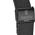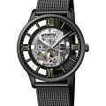 Мужские механические часы-скелетоны Festina Automatic F20535/4, механический механизм (автоматический калибр) с высокой точностью. Сапфировое стеклоСапфировое стеклоПрочный и надёжный материал из кристалла сапфира синтетического происхождения, характеризующийся особой твёрдостью и устойчивостью к царапинам и повреждениям. устойчивое к появлению царапин, обладающее высокой прозрачностью. Класс водозащиты: 50 метров, позволит защитить корпус от случайных брызг или капель дождя. Корпус часов изготовлен из стали с PVD-покрытиемPVDУльтратонкое покрытие наносится в технике вакуумного напыления, сочетает в себе нитрид титана особой прочности со слоем золота или оксида хрома. Несёт в себе декоративную или защитную функцию.. Стальной браслет на раскладной застёжкеРаскладная застёжкаТакой тип застёжки используется только на браслетах из металла. Она никогда не раскрывается полностью, происходит разделение на 2 и более частей. Раскладывающая застёжка снизит вероятность потери часов к минимуму. с PVD-покрытиемPVDУльтратонкое покрытие наносится в технике вакуумного напыления, сочетает в себе нитрид титана особой прочности со слоем золота или оксида хрома. Несёт в себе декоративную или защитную функцию.. В механизме 21 камень. Циферблат с метками в виде штрихов и римских цифр зелёного цвета. Рифленая заводная головка. Прозрачная задняя крышка. Браслет миланского плетения.