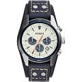 Мужские наручные часы, оснащённые хронографом с тахометрической шкалой, выполненные в спортивном стиле на широком кожаном ремешке.