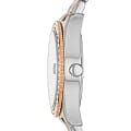 Кварцевые часы. Корпус и браслет шириной 16 мм выполнены из нержавеющей стали с частичным IP покрытием. Корпус украшен кристаллами. Серебристый циферблат с центральной секундной стрелкой. Индикация даты в позиции трех часов.