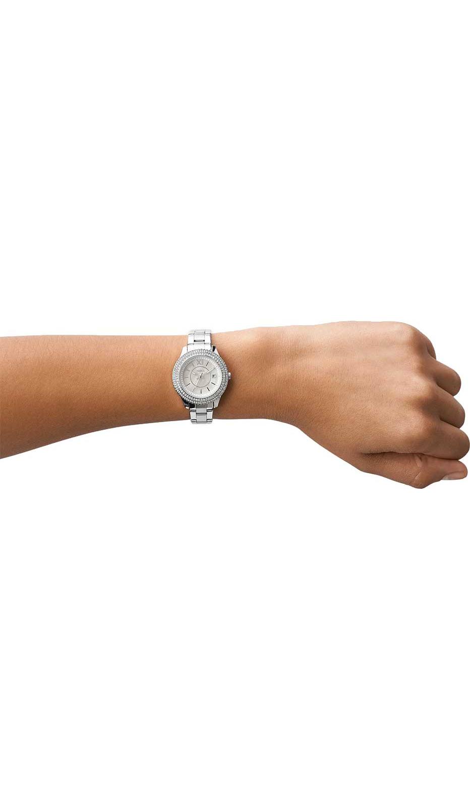 Женские американские часы Fossil Stella ES5137, кварцевый механизм с высокой точностью. Класс водозащиты: 50 метров, позволит защитить корпус от случайных брызг или капель дождя. Корпус часов изготовлен из стали, серебристого цвета.