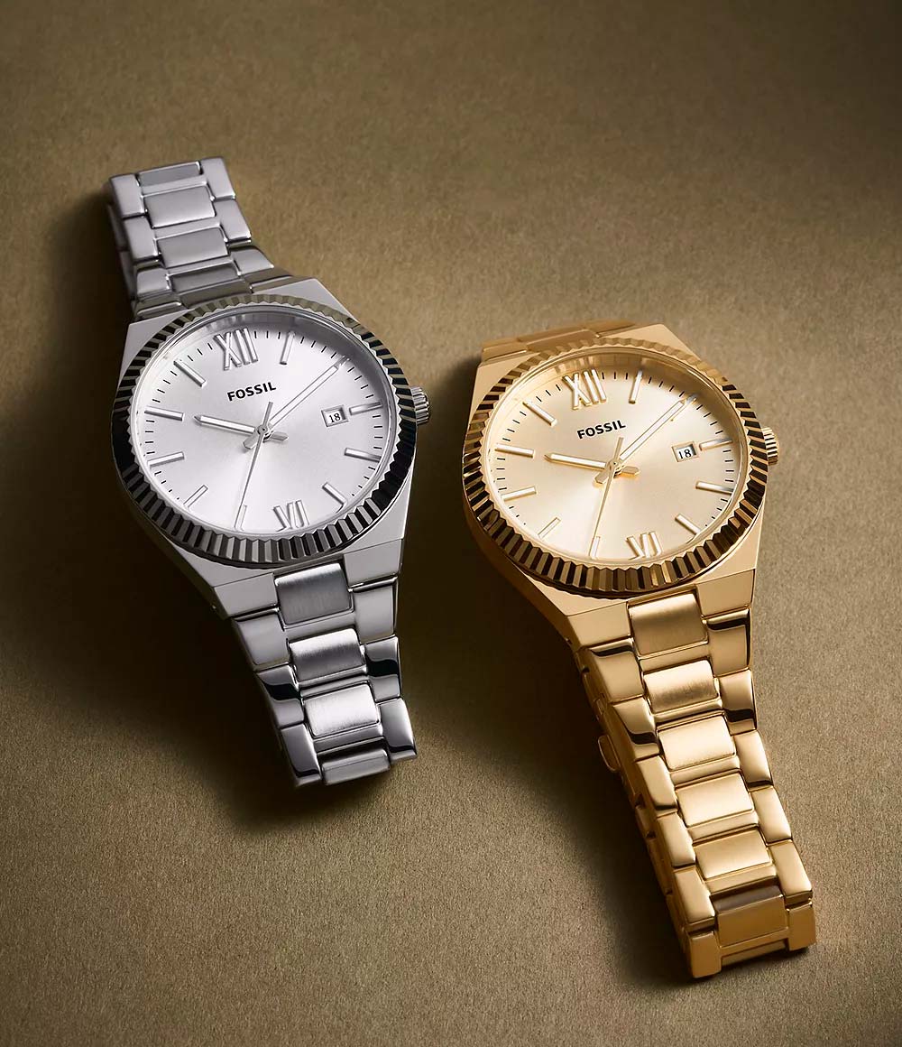 Женские американские кварцевые часы с минеральным стекломМинеральное стеклоМинеральное стекло представляет собой искусственно выращенный минерал кварца. Такое стекло отличается особой устойчивостью к повреждениям и царапинам. Уступает по некоторым качествам сапфировому стеклу. Fossil Scarlette ES5300, кварцевый механизм с высокой точностью. Класс водозащиты: 50 метров, позволит защитить корпус от случайных брызг или капель дождя. Корпус и браслет часов изготовлены из нержавеющей стали с IP-покрытиемIP-покрытиеМетод ионного напыления. Демонстрирует повышенную устойчивость к истиранию, окислению и химическим веществам. Под воздействием высокого давления и температуры около 1500°C молекулы металла надёжно соединяются с частицами корпуса часов.. Стальной браслет с раскладной застёжкойРаскладная застёжкаТакой тип застёжки используется только на браслетах из металла. Она никогда не раскрывается полностью, происходит разделение на 2 и более частей. Раскладывающая застёжка снизит вероятность потери часов к минимуму.. Окошко даты находятся в положении 3 часа. Стрелки и метки с люминесцентным покрытиемЛюминесцентное покрытиеПозволяет считывать показания времени в темноте. Производители наносят на стрелки, часовые индексы, безель или поверхность циферблата светонакопительный состав, дающий холодное свечение..