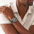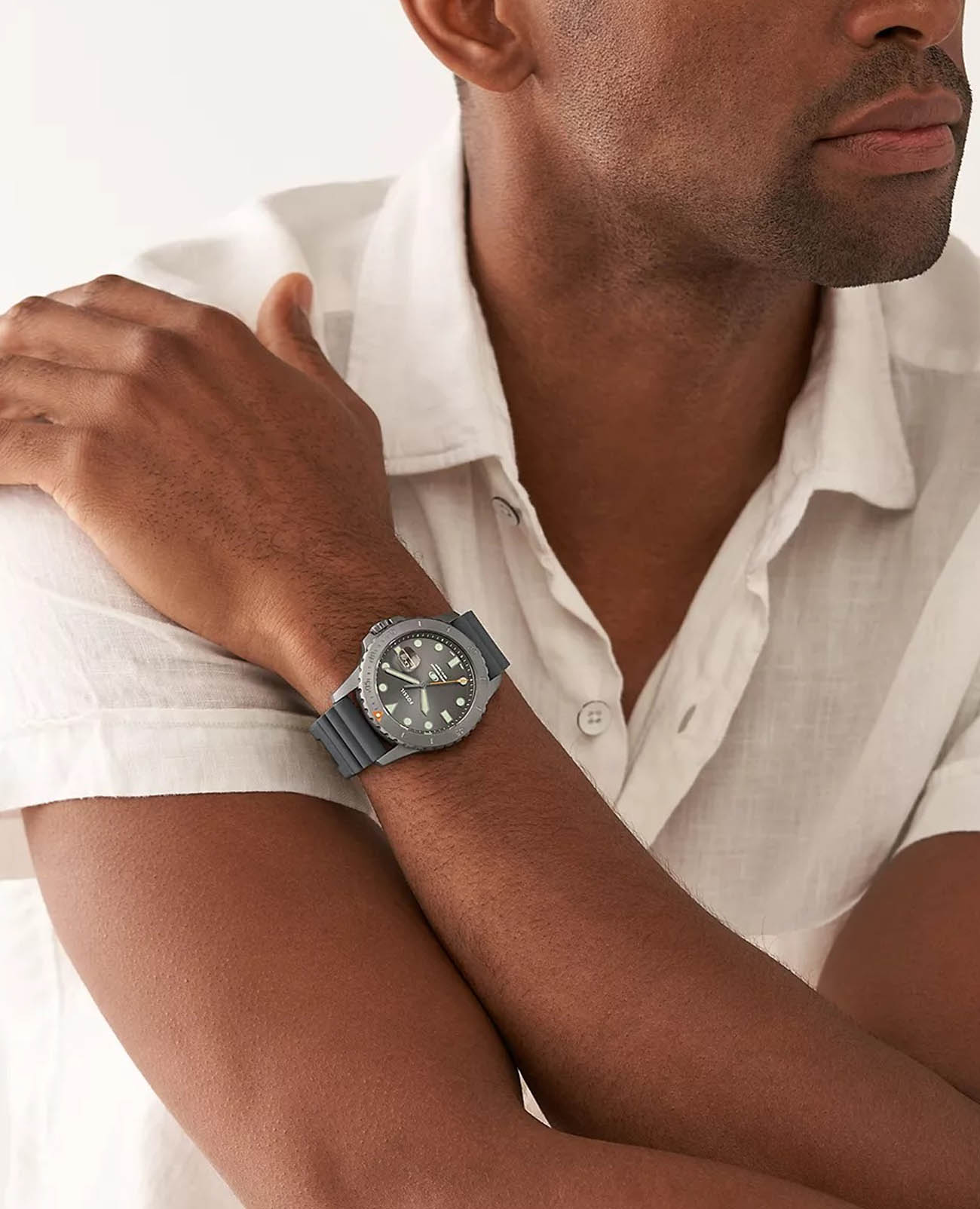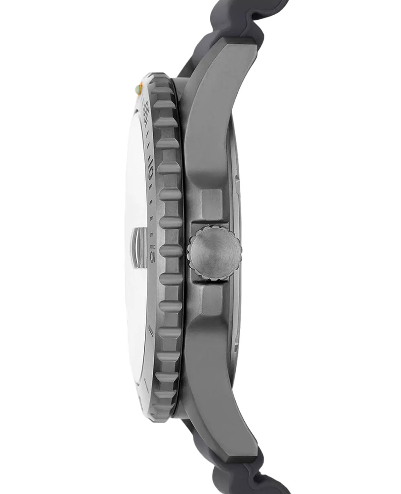 Мужские американские часы с минеральным стекломМинеральное стеклоМинеральное стекло представляет собой искусственно выращенный минерал кварца. Такое стекло отличается особой устойчивостью к повреждениям и царапинам. Уступает по некоторым качествам сапфировому стеклу. Fossil Blue FS5994, кварцевый механизм с высокой точностью. Корпус часов изготовлен из нержавеющей стали с IP-покрытиемIP-покрытиеМетод ионного напыления. Демонстрирует повышенную устойчивость к истиранию, окислению и химическим веществам. Под воздействием высокого давления и температуры около 1500°C молекулы металла надёжно соединяются с частицами корпуса часов.. Вращающийся безельБезельВнешний ободок, закрепляющий стекло. В спортивных часах так называется поворотное кольцо с делениями на циферблате, выполняет роль таймера – замеряет отрезки времени на шкале. Неподвижный безель – элемент декора. Однонаправленно вращающийся безель на дайверских часах позволяет фиксировать моменты погружения и выныривания на поверхность. с IP-покрытиемIP-покрытиеМетод ионного напыления. Демонстрирует повышенную устойчивость к истиранию, окислению и химическим веществам. Под воздействием высокого давления и температуры около 1500°C молекулы металла надёжно соединяются с частицами корпуса часов.. Метки и стрелки с люминесцентным покрытиемЛюминесцентное покрытиеПозволяет считывать показания времени в темноте. Производители наносят на стрелки, часовые индексы, безель или поверхность циферблата светонакопительный состав, дающий холодное свечение.. Окошко даты находится в положении 3 часа. Рифленая заводная головка с защитой. Класс водозащиты: 100 метров, позволит плавать, нырять и заниматься другими водными видами спорта. Силиконовый ремешок на стандартной застёжке.